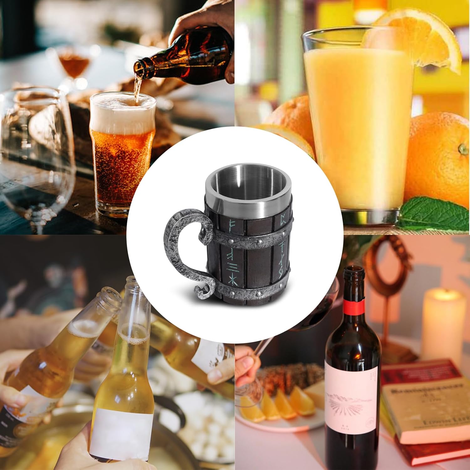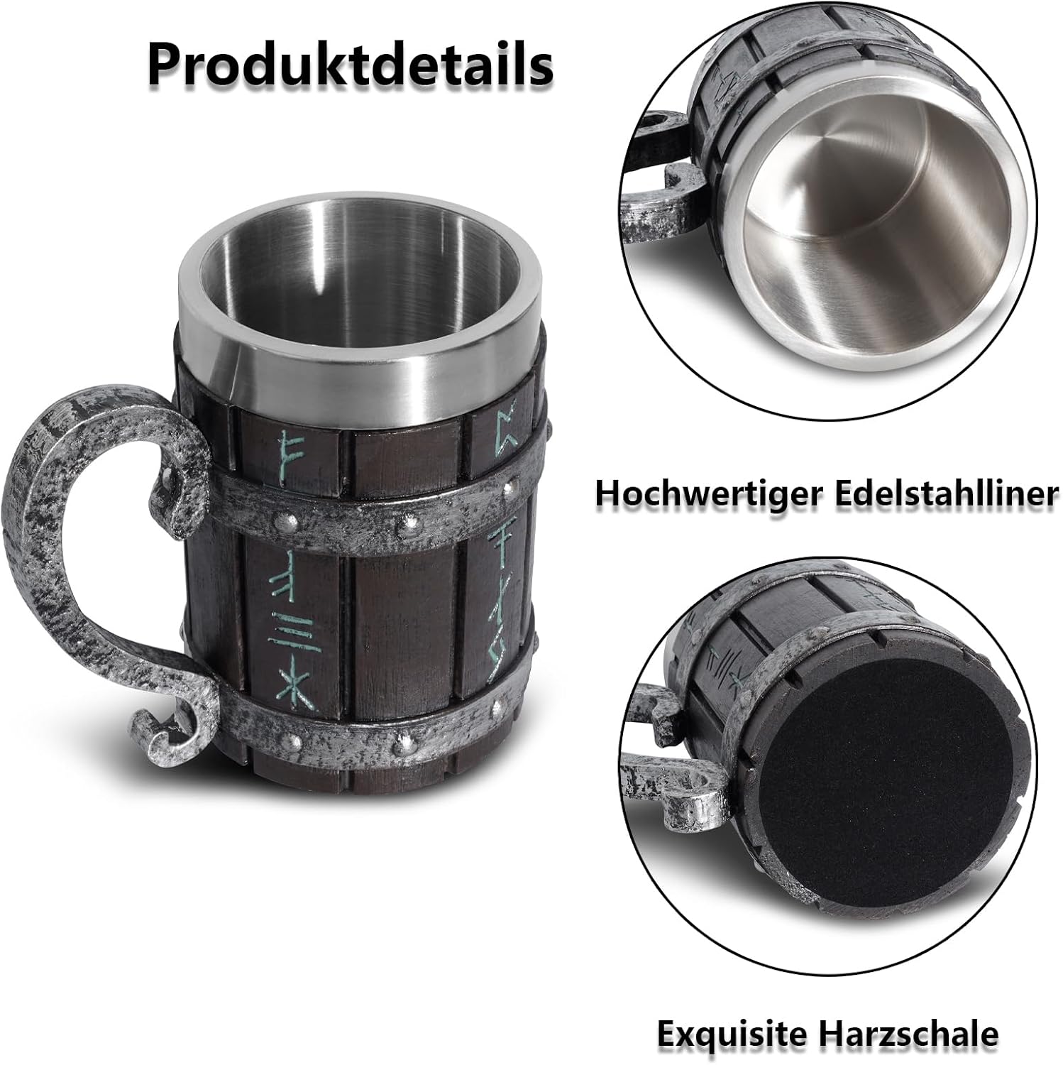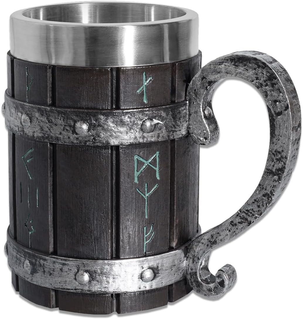 Ретро викингски стил: Тази бирена халба е проектирана във винтидж викингски стил, с имитация на бамбуково листо, изработено от смола, фина изработка, ярък, ръчно рисуван цвят, много красива и уникална.