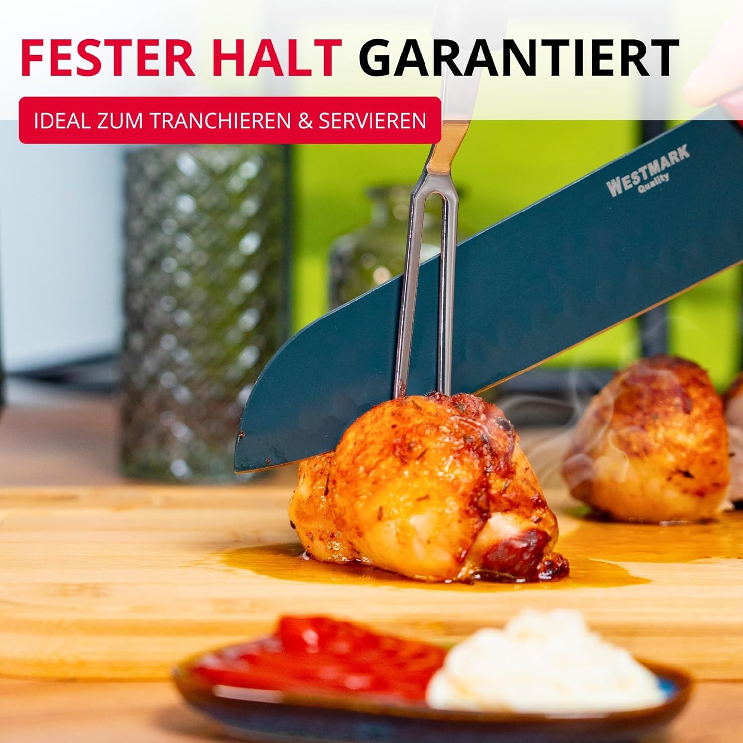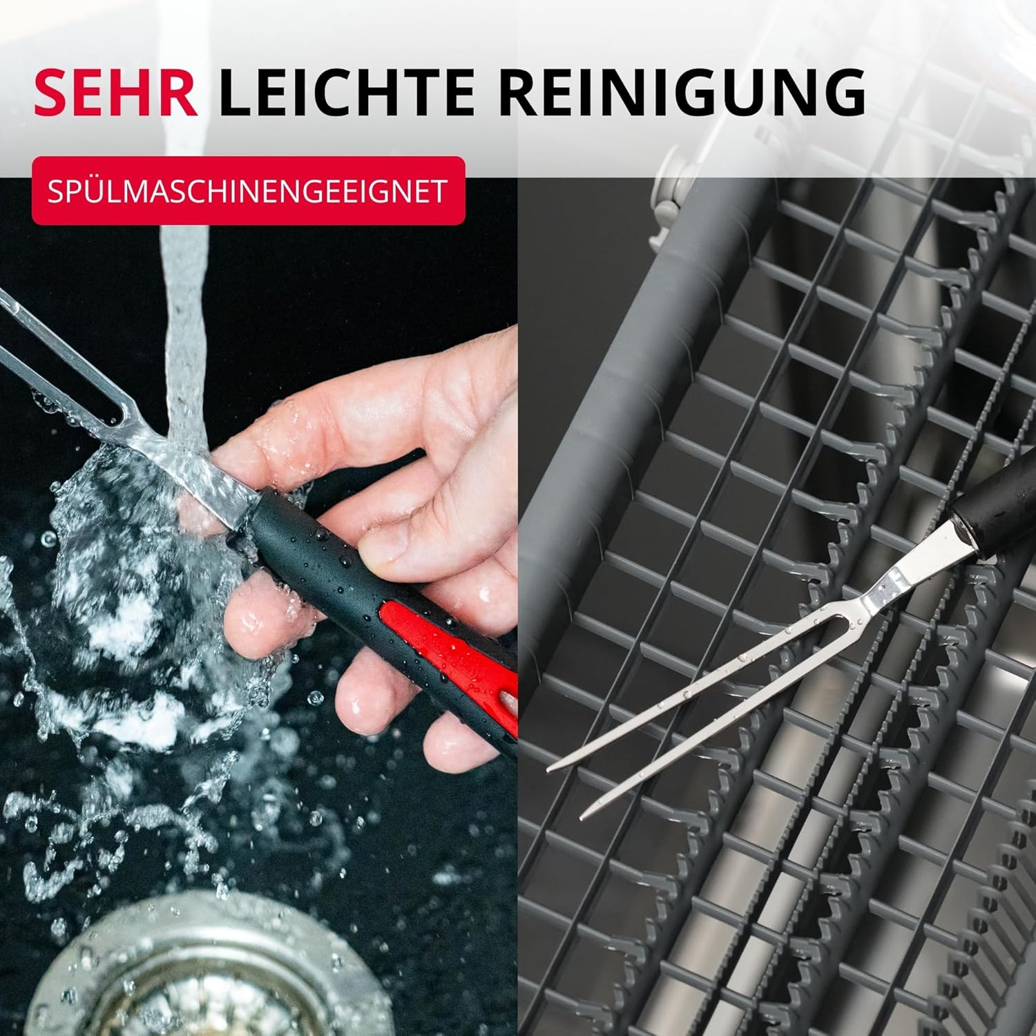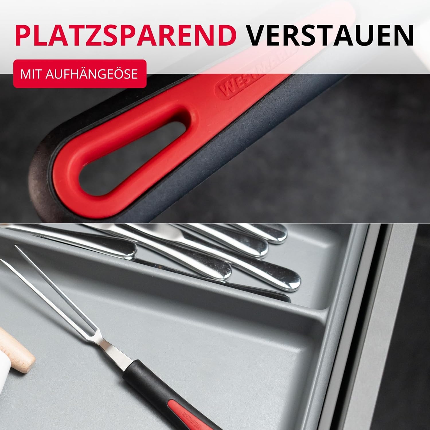 Вилица за месо Westmark, дълга, тънки зъбци, ергономична дръжка, пластмаса/неръждаема стомана, галантна, черна/червена/сребриста, 29492270