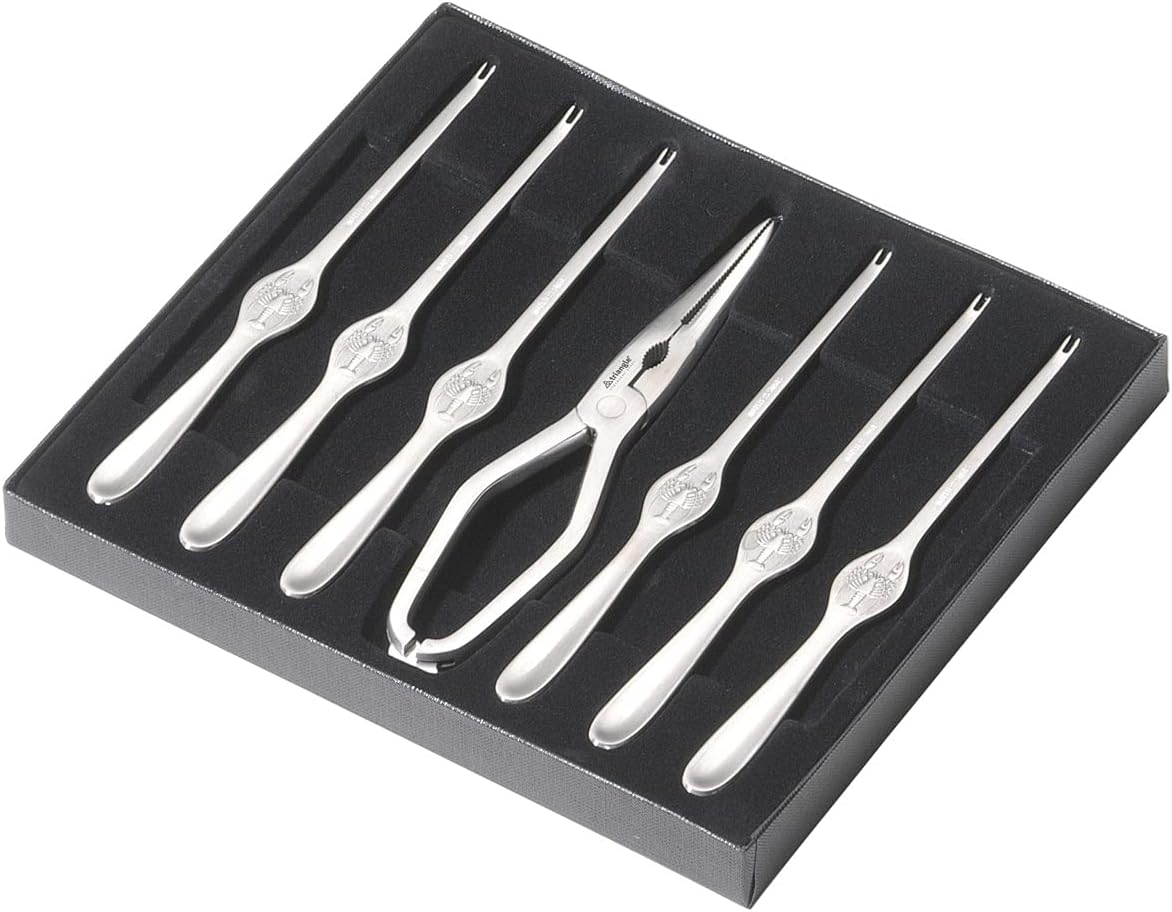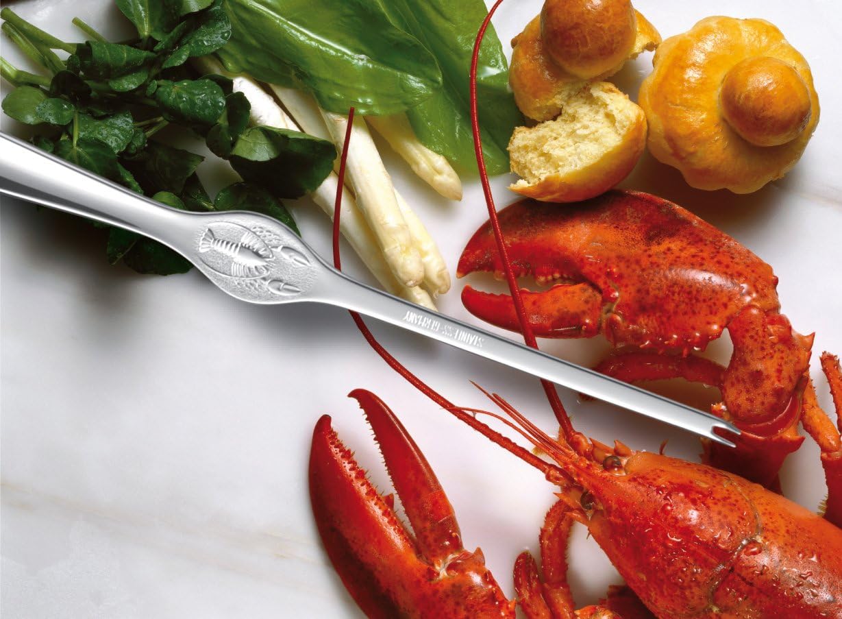 • ПОДРОБНОСТИ: Комплект от 7 части, състоящ се от 1 щипка за омар № 50 479 18 00 и 6 тънки вилици за омар с наклонени зъбци