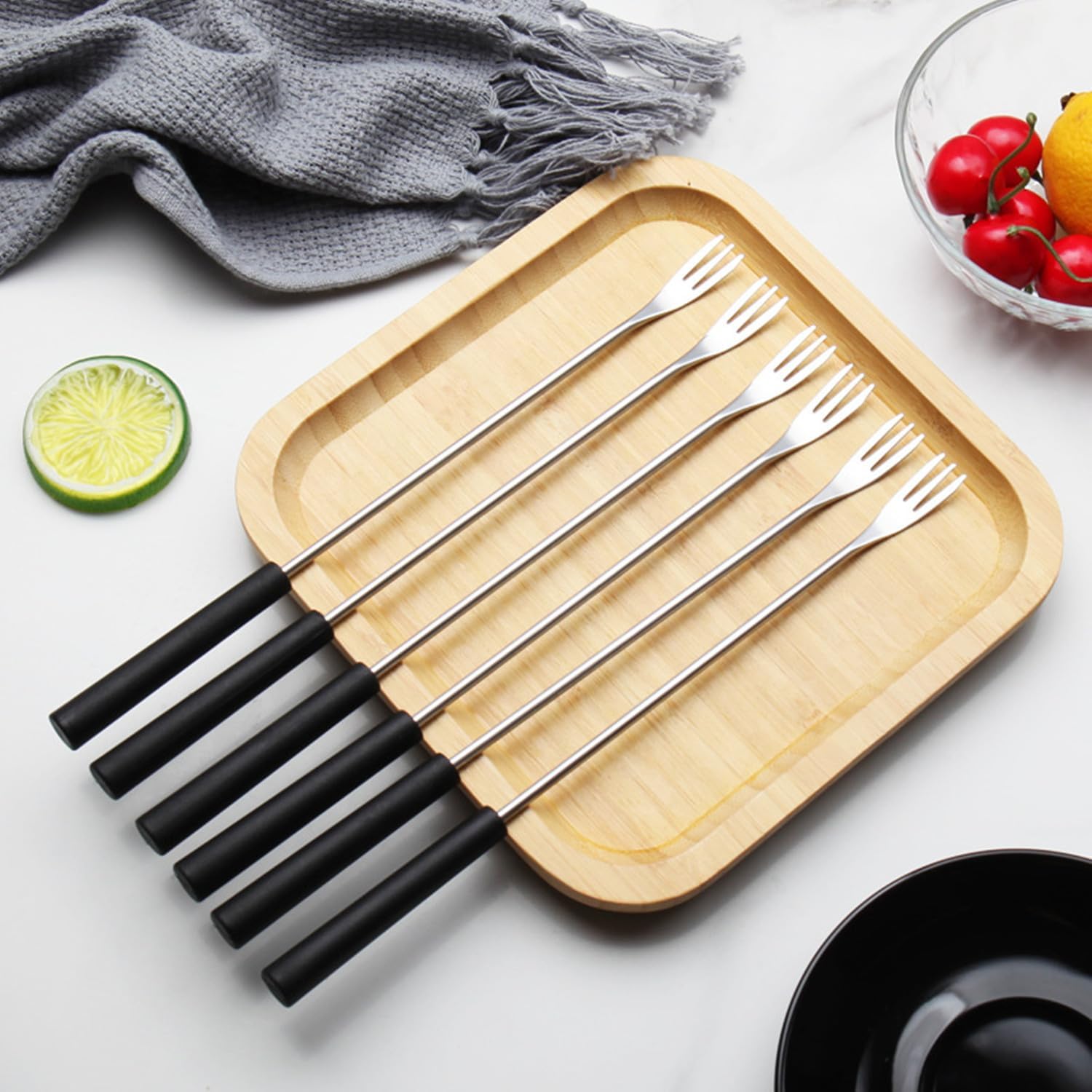 Вилици за фондю със сирене от неръждаема стомана, комплект за фондю със сирене с термоустойчиви дръжки, за сирене, шоколад, маршмелоу, 6 броя (черни)