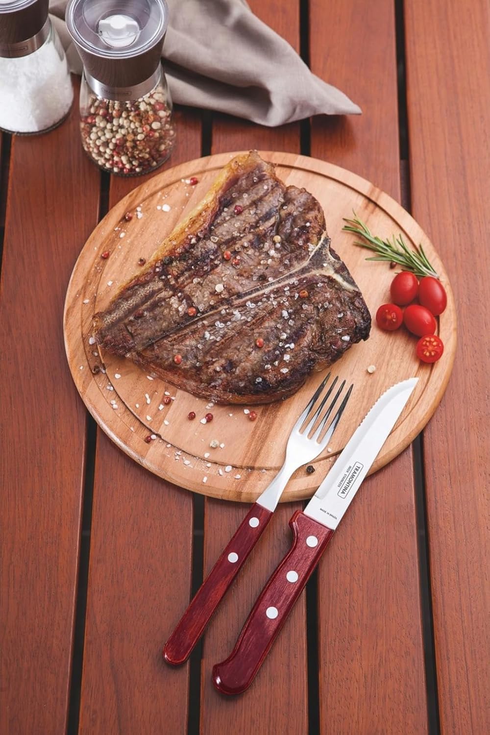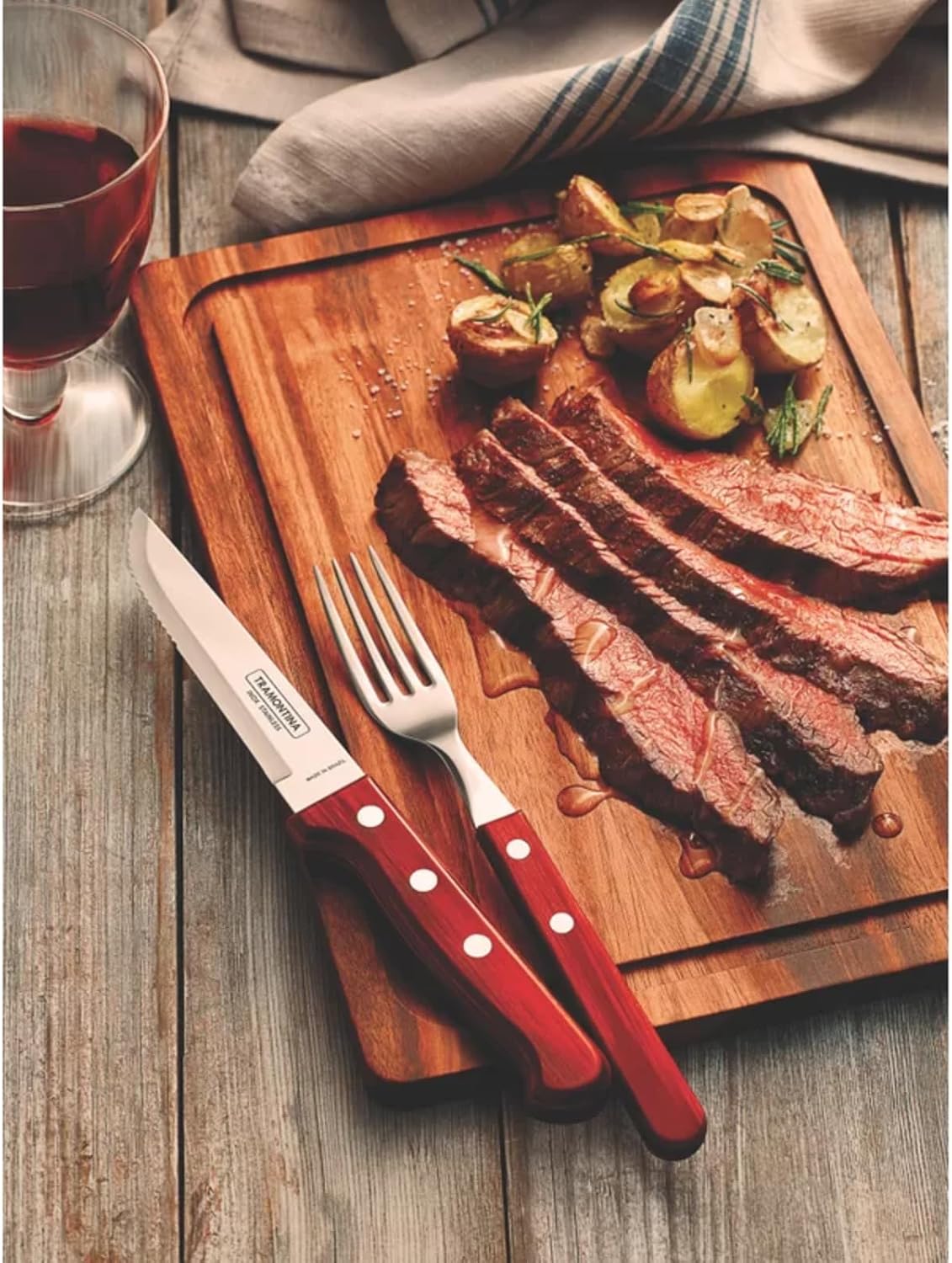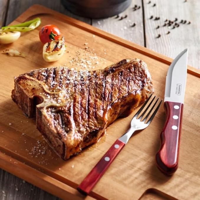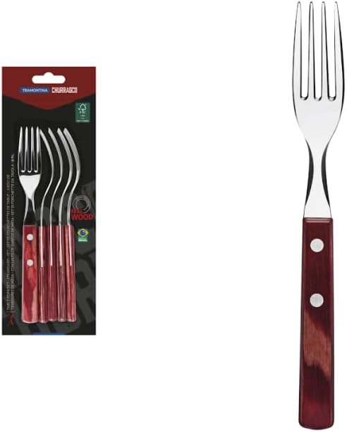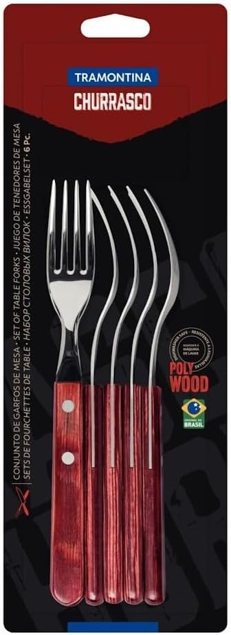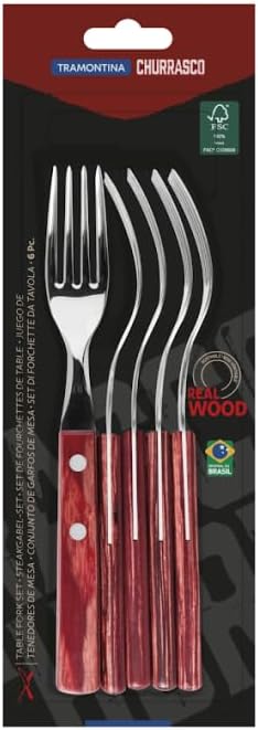 Вилици за пица Tramontina Steak Fork, комплект, 6 части, неръждаема стомана, FSC, червена дървена дръжка, 20, Tramontina_29899/156