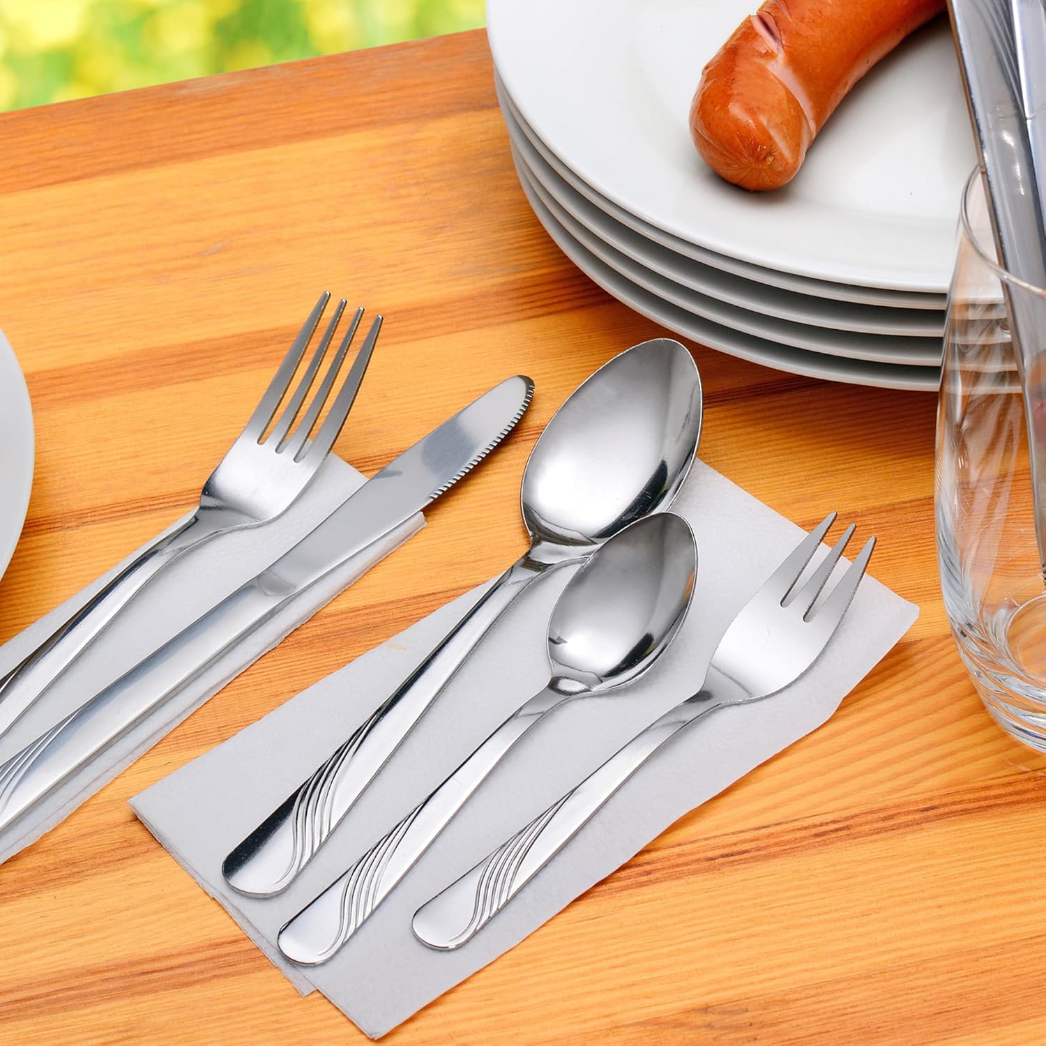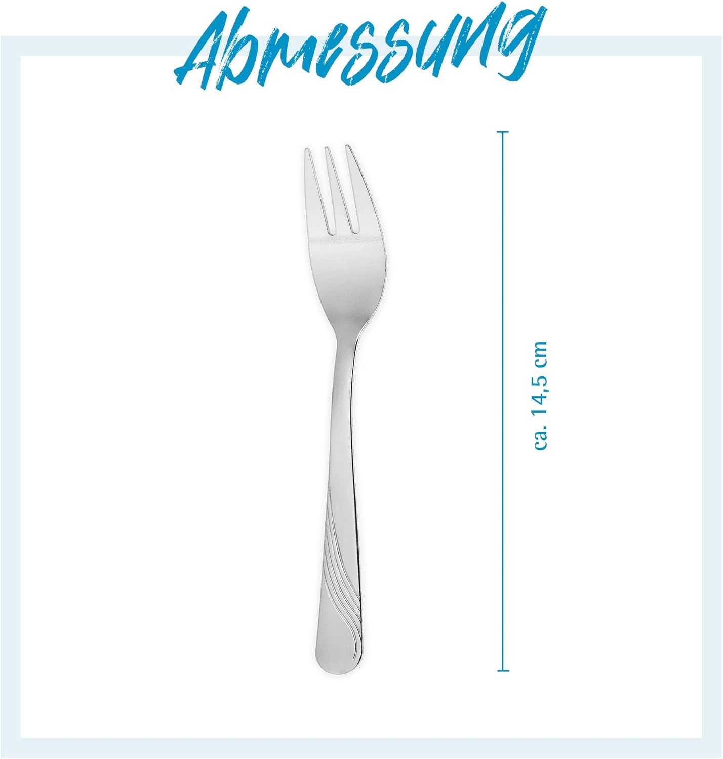- Вилици за торта GRÄWE, 60 броя - Вечни и елегантни за ежедневна употреба. Този прибор от серията RÜGEN, със своя изтънчен дизайн, е идеален за празненства, градински партита или като професионални прибори за хранене в ресторант. Всички части са изработени от неръждаема стомана 18/0 и са подходящи за съдомиялна машина. Включва: - 60 вилици за торта; обща дължина приблизително 14 см, дебелина на дръжката: приблизително 1,8 мм, тегло приблизително 16 г