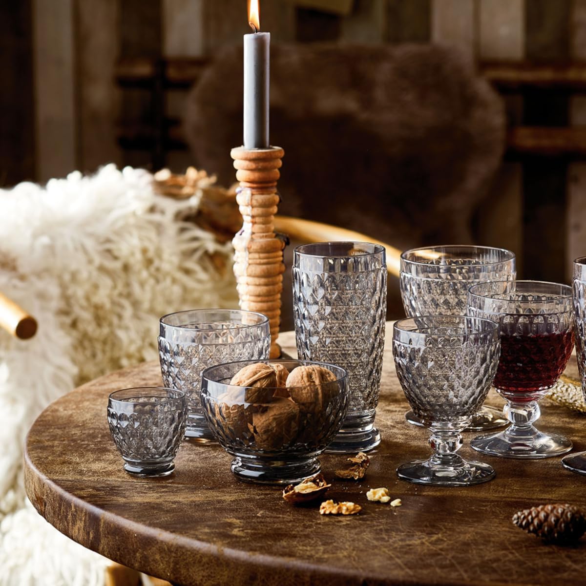 Видимите текстури и тактилните качества, съчетани с класически дизайнерски език във винтидж стил, в момента са основна тенденция в интериорния дизайн. Колекцията Boston, със своя фасетиран мотив, перфектно улавя тази естетика. Отличителният диамантен мотив пречупва светлината, карайки всяка чаша да блести като диамант и ѝ придава сияйна елегантност. Впечатляващият фасетиран мотив и висококачественото кристално стъкло правят колекцията Boston привлекателен фокусен елемент както за ежедневна употреба, така и за специални поводи.
