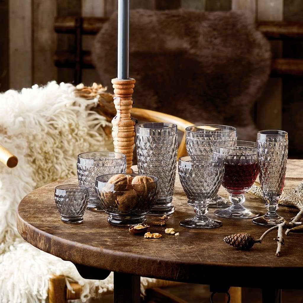 Видимите текстури и тактилните качества, съчетани с класически дизайнерски език във винтидж стил, в момента са основна тенденция в интериорния дизайн. Колекцията Boston, със своя фасетиран мотив, перфектно улавя тази естетика. Отличителният диамантен мотив пречупва светлината, карайки всяка чаша да блести като диамант и ѝ придава сияйна елегантност. Впечатляващият фасетиран мотив и висококачественото кристално стъкло правят колекцията Boston привлекателен фокусен елемент както за ежедневна употреба, така и за специални поводи.
