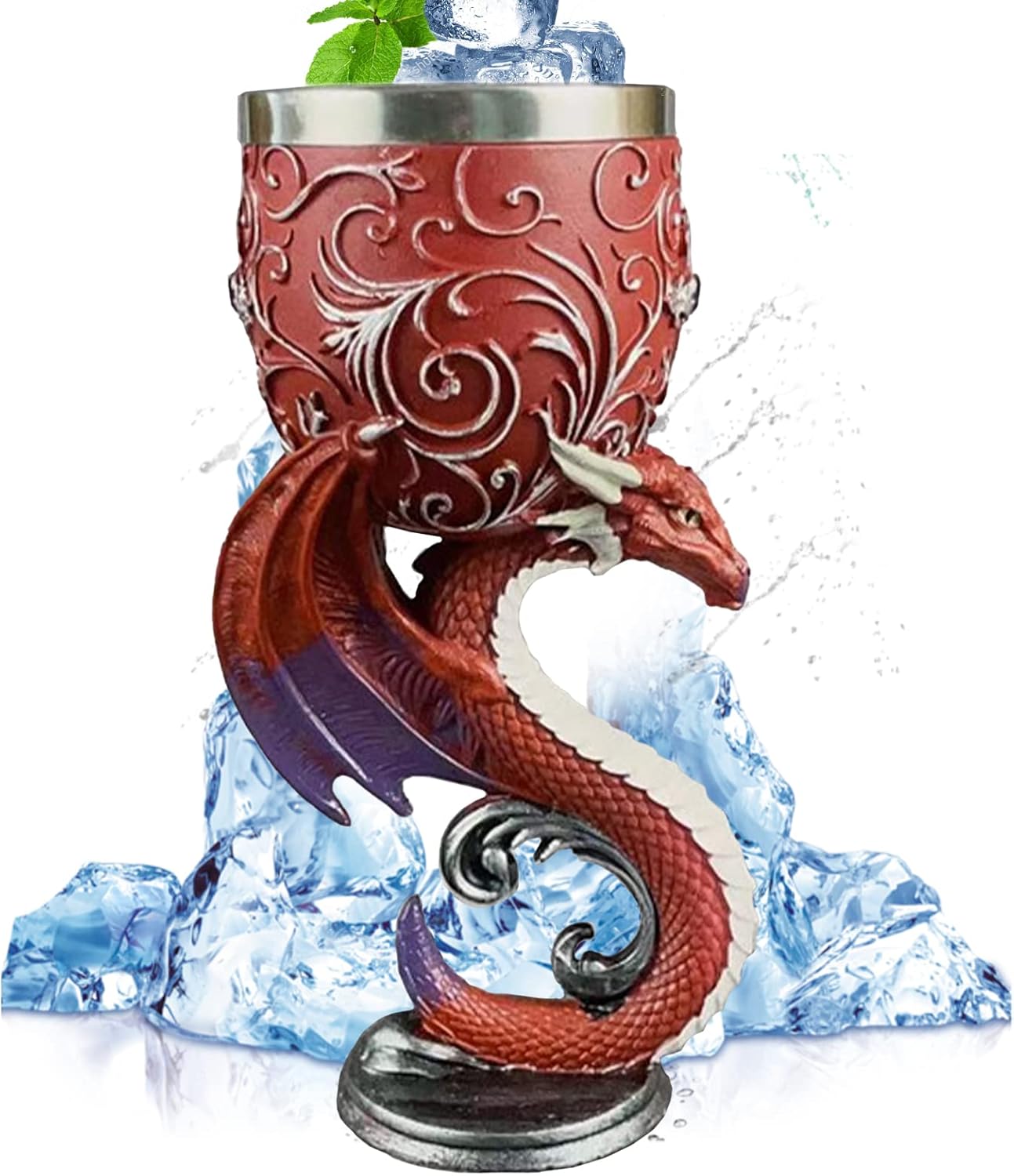 Dieser Kelch ist von Kopf bis Fuß mit einem atemberaubenden 3D-Relief eines majestätischen roten Drachens verziert. Der Drache windet sich elegant um den Kelch, seine Schuppen schimmern im Licht und seine Flügel erstrecken sich majestätisch. Die kunstvolle Darstellung verleiht dem Kelch eine kraftvolle und eindringliche Präsenz, die die Fantasie beflügelt und jeden Raum mit einer Aura des Abenteuers erfüllt. Ideal für Liebhaber von Drachenmythen und Fans von epischen Geschichten.