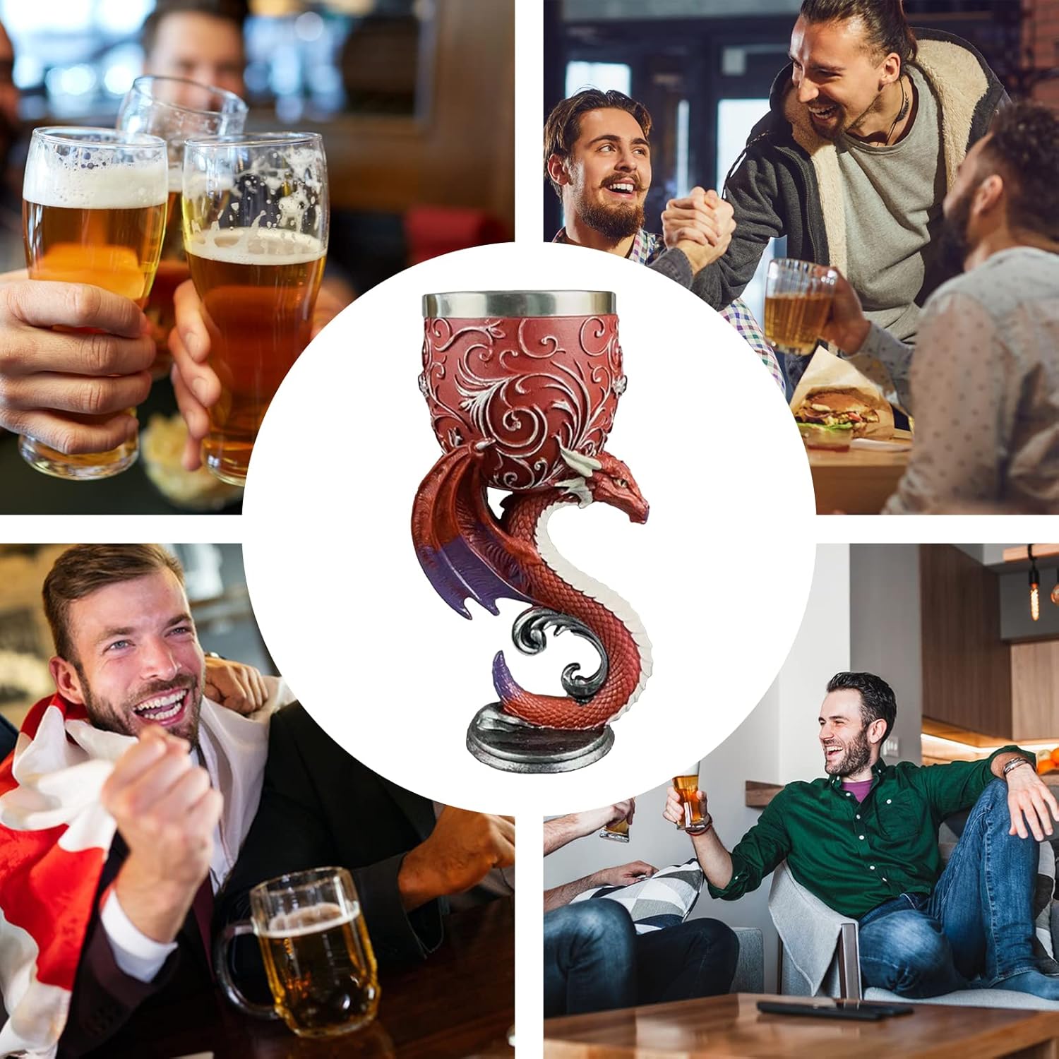 Халбата за бира Dragon Goblet с ретро дизайна си подобрява социалното изживяване при пиене за всички. Вътрешният контейнер на халбата от неръждаема стомана е здраво закрепен на мястото си и няма да падне, дори когато е обърнат напълно с главата надолу. Неръждаемата облицовка е по-дебела, има по-голям капацитет и превъзходно покритие.