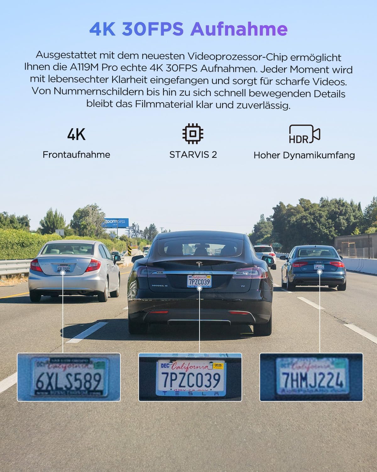• [4K 30FPS ултра-ясен запис и STARVIS 2 сензор] Оборудвана със сензор STARVIS 2 IMX678, A119M Pro записва зашеметяващо 4K 30FPS видео, улавяйки всеки регистрационен номер, пътен знак и детайл с изключителна яснота. Независимо дали при високи скорости или при трудни условия на осветление, тази предна видеокамера за автомобил осигурява кадри с професионално качество с минимален шум и размазване от движение, което я прави незаменима камера за доказателства и сигурност.