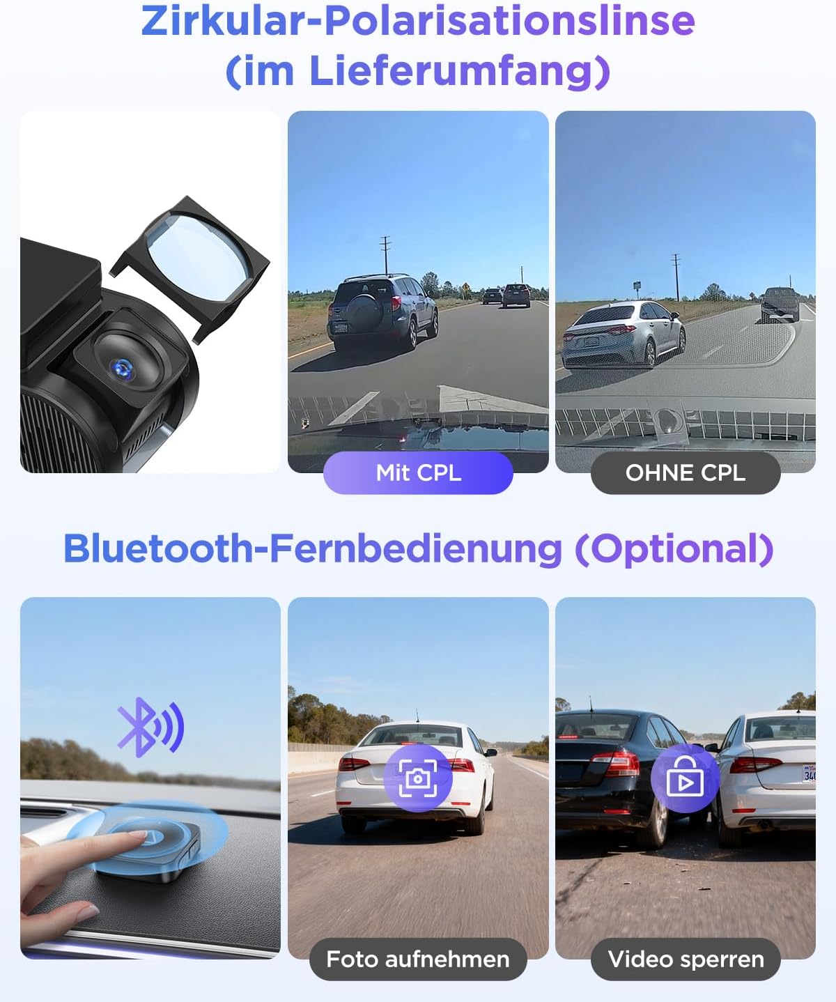 • [Компактен дизайн и включва CPL филтър] Видеорегистраторът A119M Pro е с компактен, нископрофилен дизайн, който може да се монтира дискретно зад огледалото за обратно виждане за безпрепятствена видимост и минимално разсейване по време на шофиране. CPL филтър е включен стандартно, като ефективно намалява отраженията от предното стъкло и отблясъците от слънчева светлина или фарове – за подобрена яснота на изображението и точност на цветовете денем и нощем.