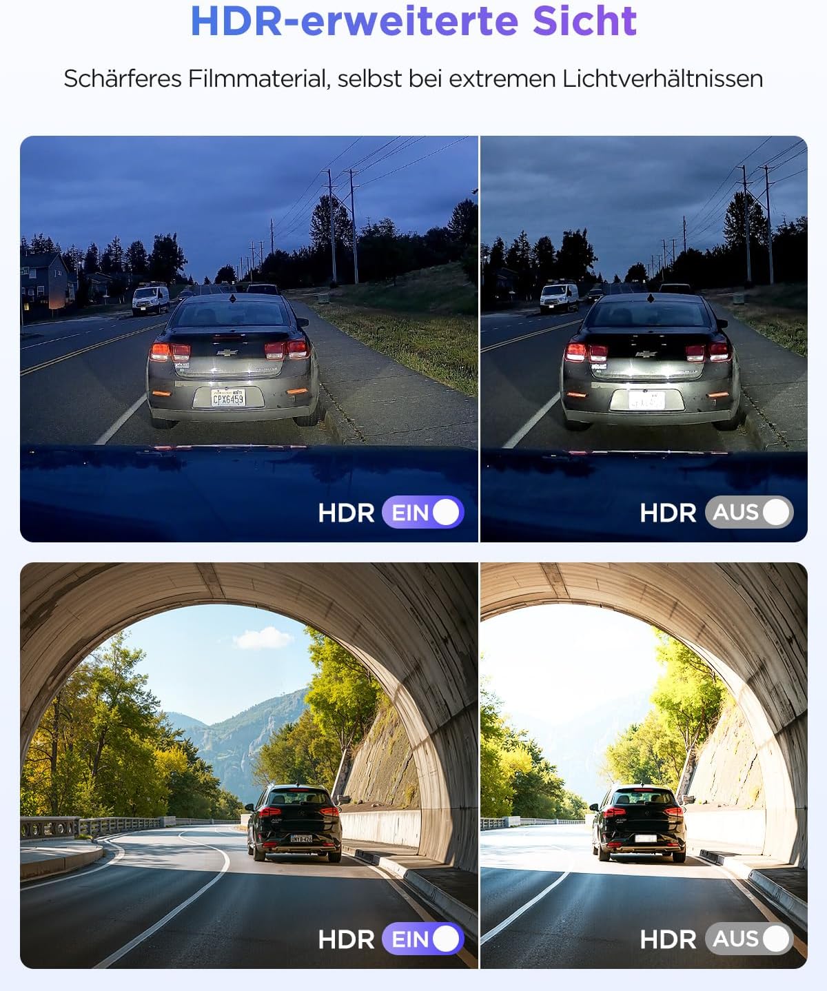 • [HDR и нощно виждане 2.0] Усъвършенстваната технология Night Vision 2.0 на видеорегистратора A119M Pro, комбинирана с HDR технология, подобрява записа при слаба светлина и балансира изключително светлите и тъмните зони. Това осигурява ясно разпознаване на регистрационния номер и отчетливи детайли в тунели, дъжд или по време на нощно шофиране. HDR запазва естествените цветове и рязкост, осигурявайки надеждно 4K видео изживяване по всяко време на деня.