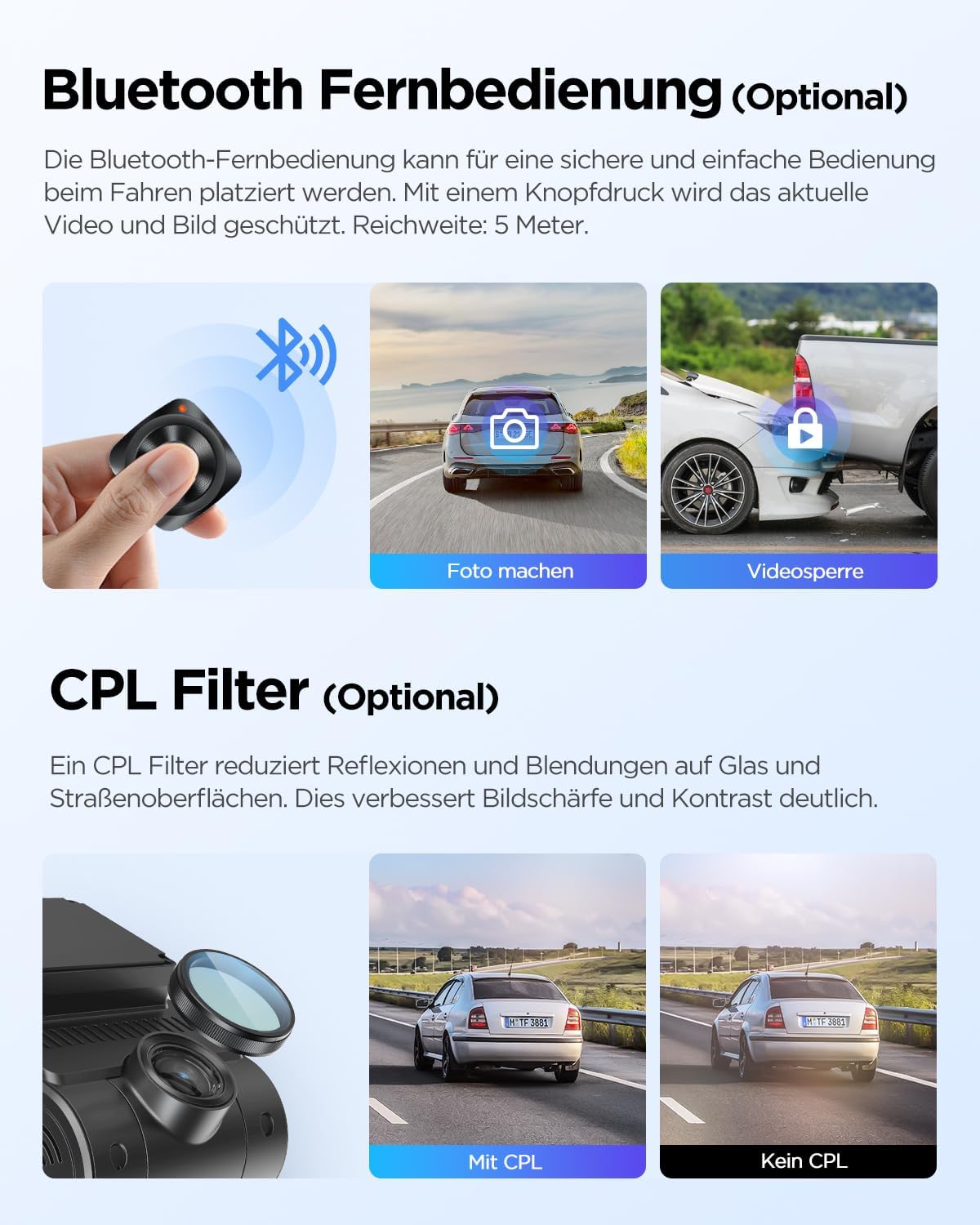 • 【Двойно HDR отпред и отзад и Super Night Vision】Благодарение на двойните сензори STARVIS 2 IMX675, тази видеокамера се справя отлично в различни условия на осветление. Тези първокласни сензори, съчетани с усъвършенствана HDR технология за предните и задните камери на автомобила, балансират изключително светлите и тъмните зони, за да възпроизведат вярно 2K детайлите, записани през нощта, и надеждно да заснемат предните и задните регистрационни номера, дори по време на бързо движещи се сцени.