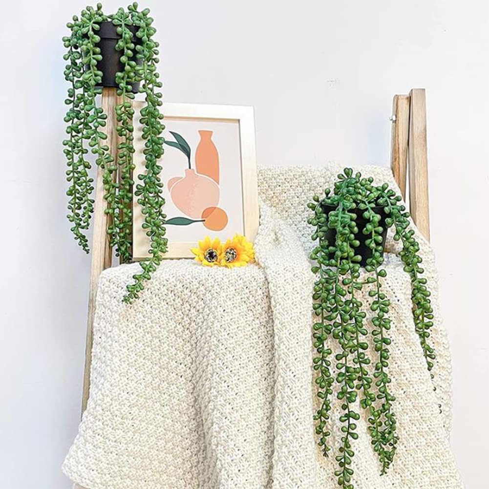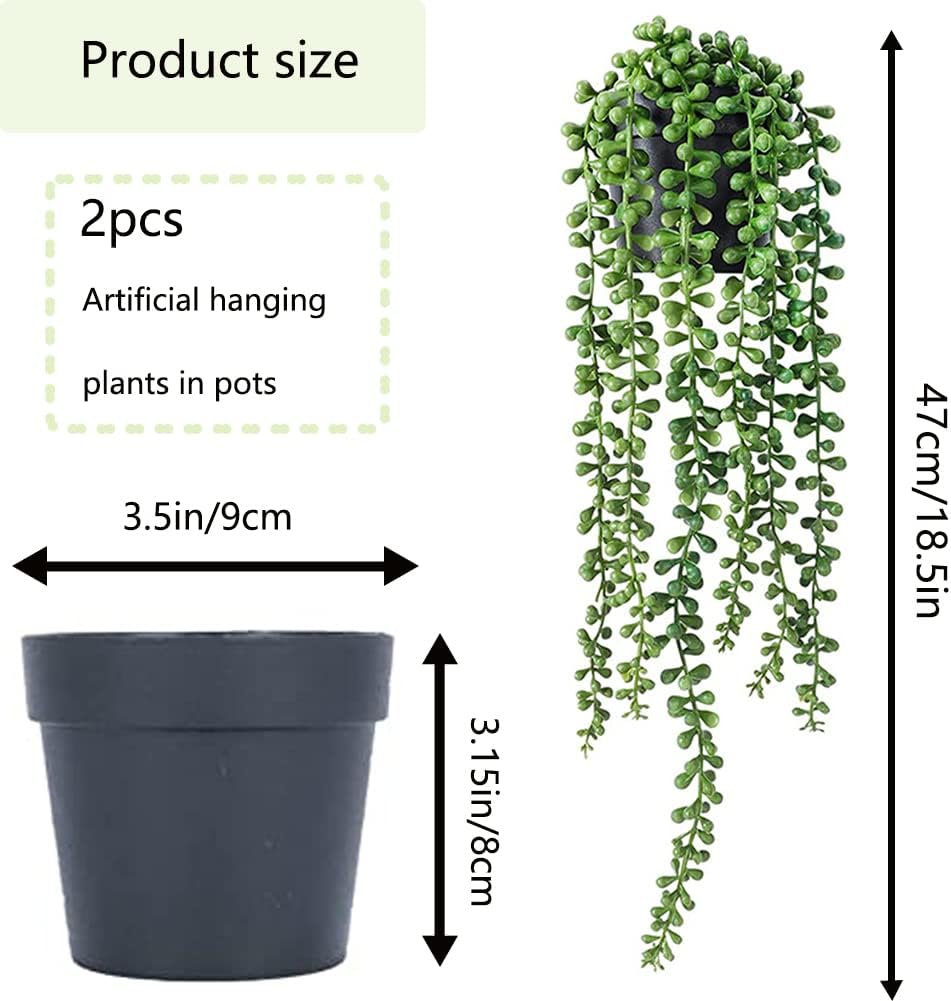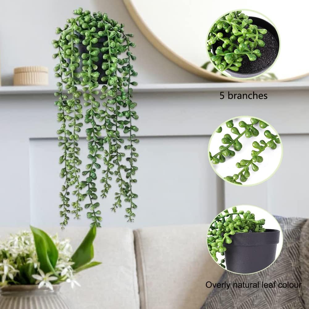 Висящи изкуствени растения, 2 изкуствени висящи растения в саксия, изкуствени растения висящи сукуленти, изкуствени растения като истински, изкуствени растения за външен монтаж, висящи пластмасови растения със саксии за декорация