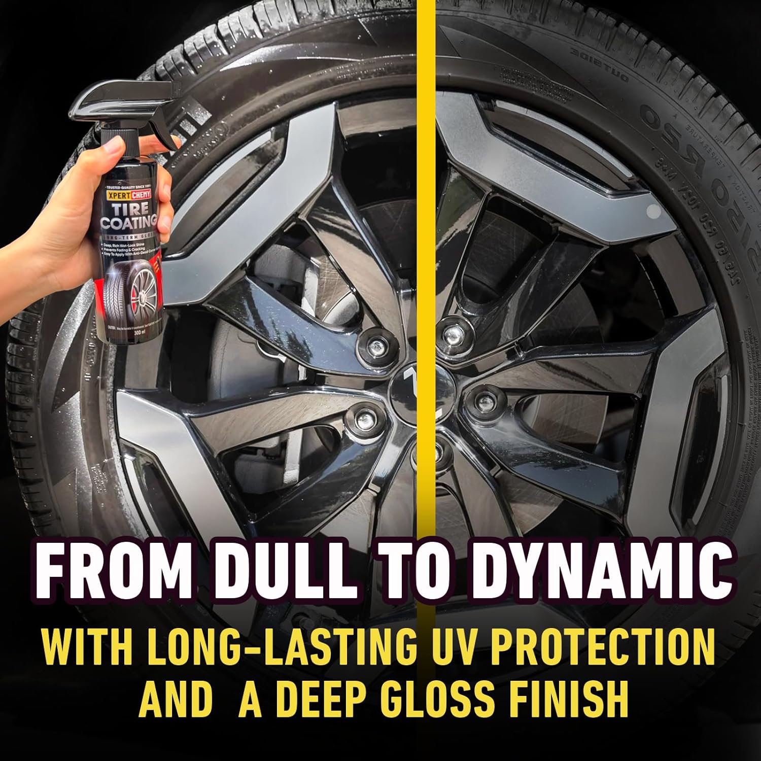 Високо гланцово покритие за автомобилни гуми, Поддържа и предпазва гумата и гумите от напукване и избледняване, Дълготраен блясък на гумите, Грижа за автомобила