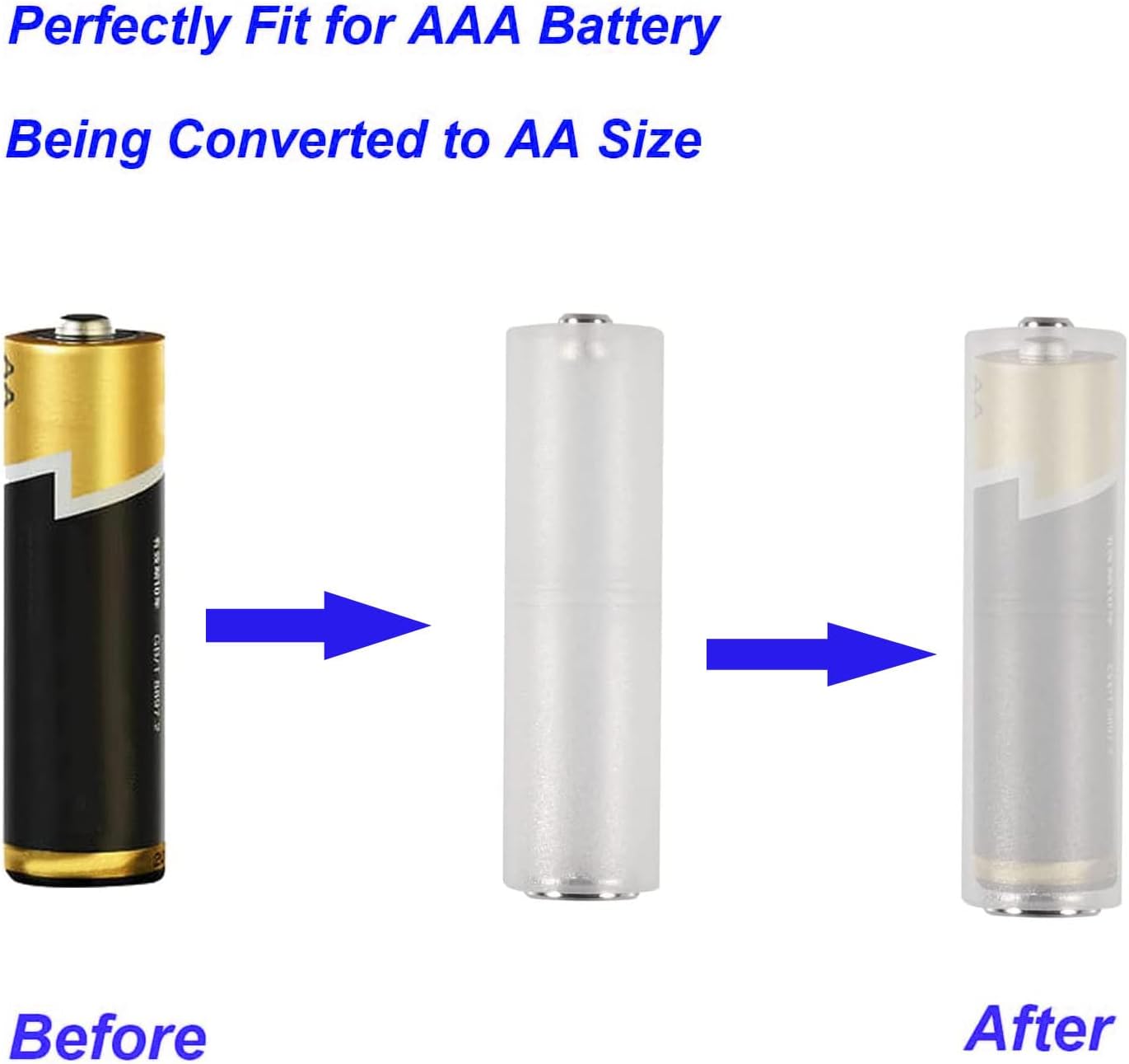 • Конвертор от батерии AAA към AA: отрицателният електрод на батерията AAA е директно изложен на риск. Положителният електрод е с удължен аноден капак от чист купроникел, съвместим с устройства с по-дълбок анод. Контактното съпротивление е значително намалено чрез увеличаване на контактната част между вътрешността на корпуса на адаптера и батерията.