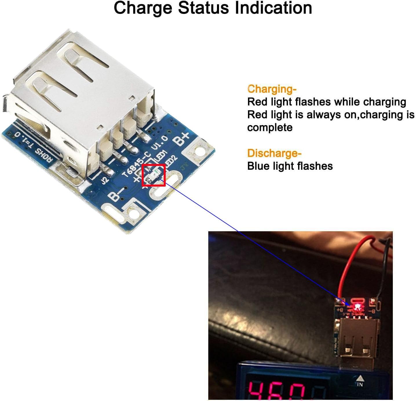 Високо качество, червената светлина свети при пълно зареждане, а синята светлина мига при разреждане.