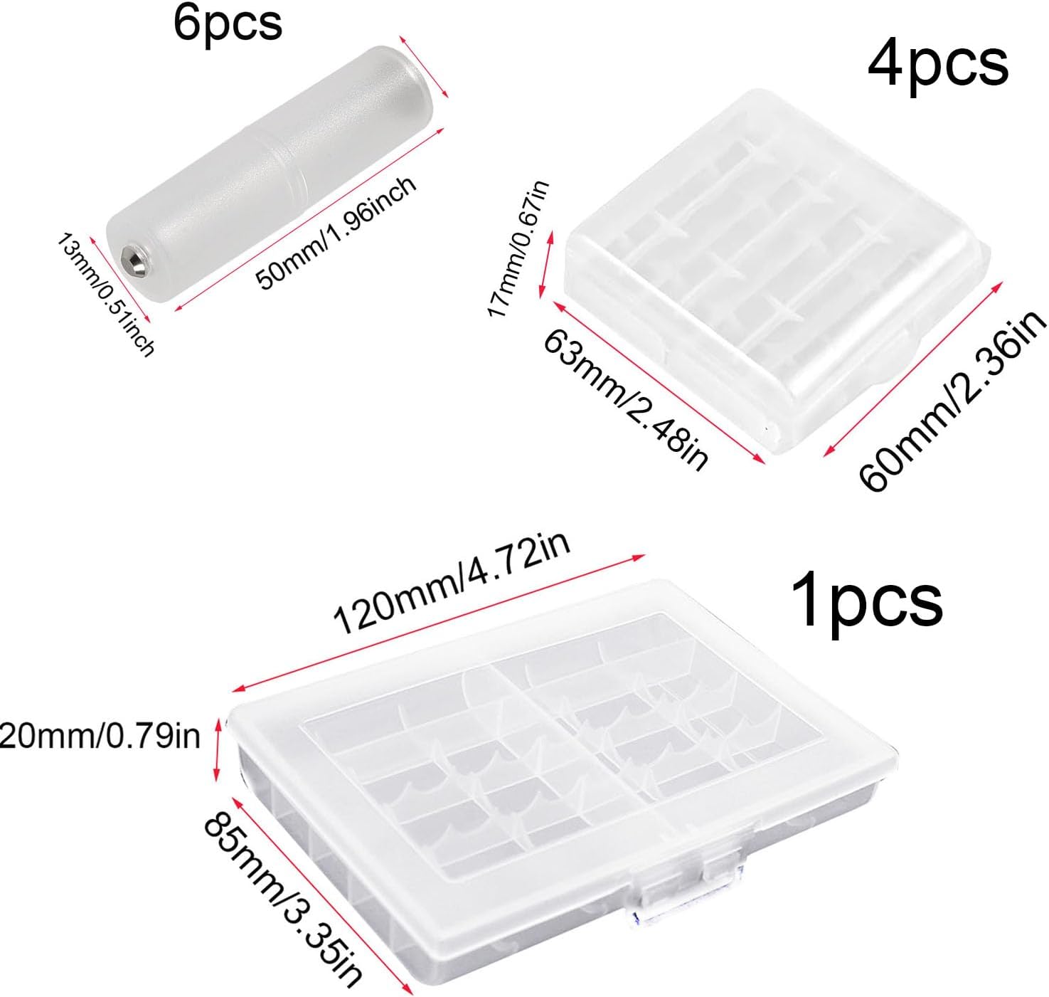 VISSQH Пакет от 6 конвертора за батерии AAA към AA, цилиндричен адаптер за батерии AAA към AA, адаптер за конвертор за батерии AAA към AA, държач за адаптер за батерии AAA към AA с кутия за батерии AA към AAA за батерии AAA към AA