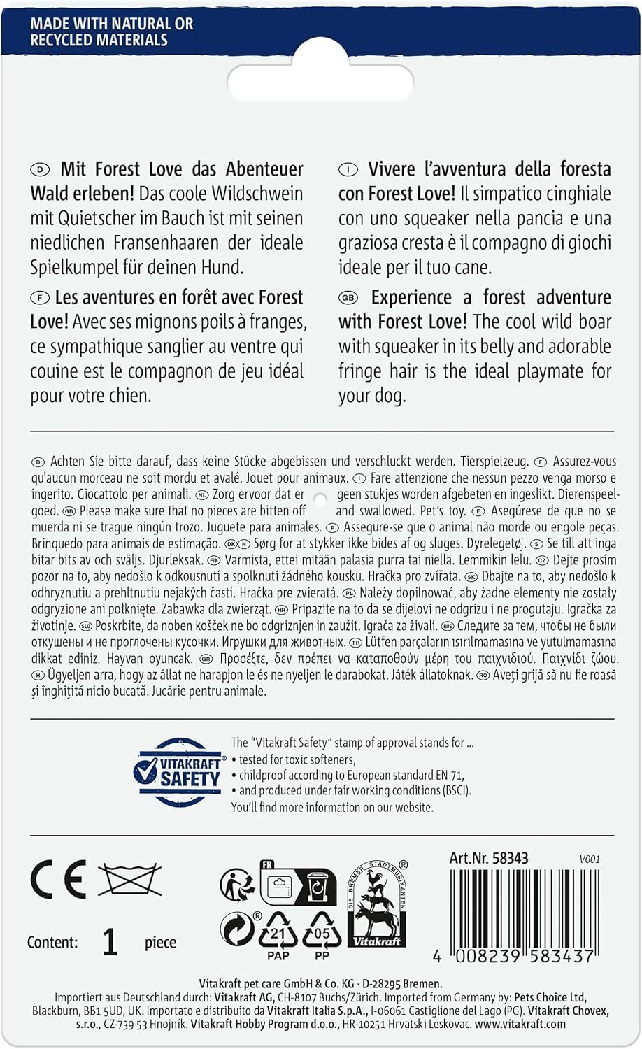 Vitakraft Forest Love Играчка за кучета с дива свиня, играчка за кучета с пищялка, кадифе (опаковка от 1)