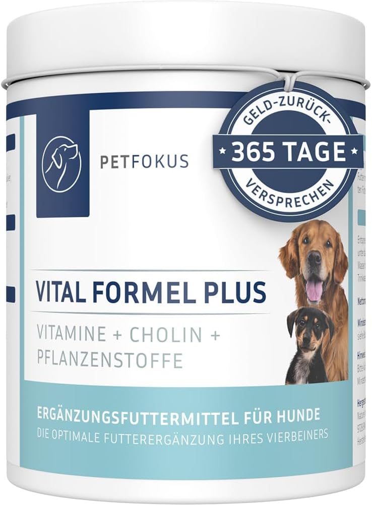 Eine Dose enthält 130 g PetFokus Vital Formel Plus.