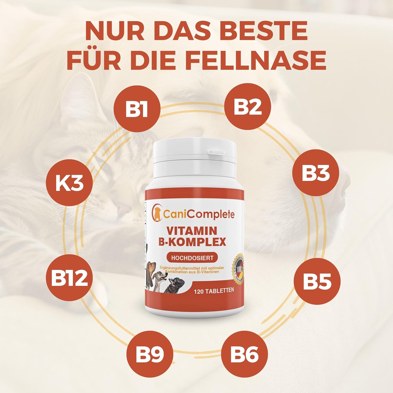 Витаминен комплекс B за кучета – С B1, B2, B3, B5, B6, B9, B12 и – Мултивитамин за енергиен метаболизъм, нерви и жизненост – Произведено в Германия