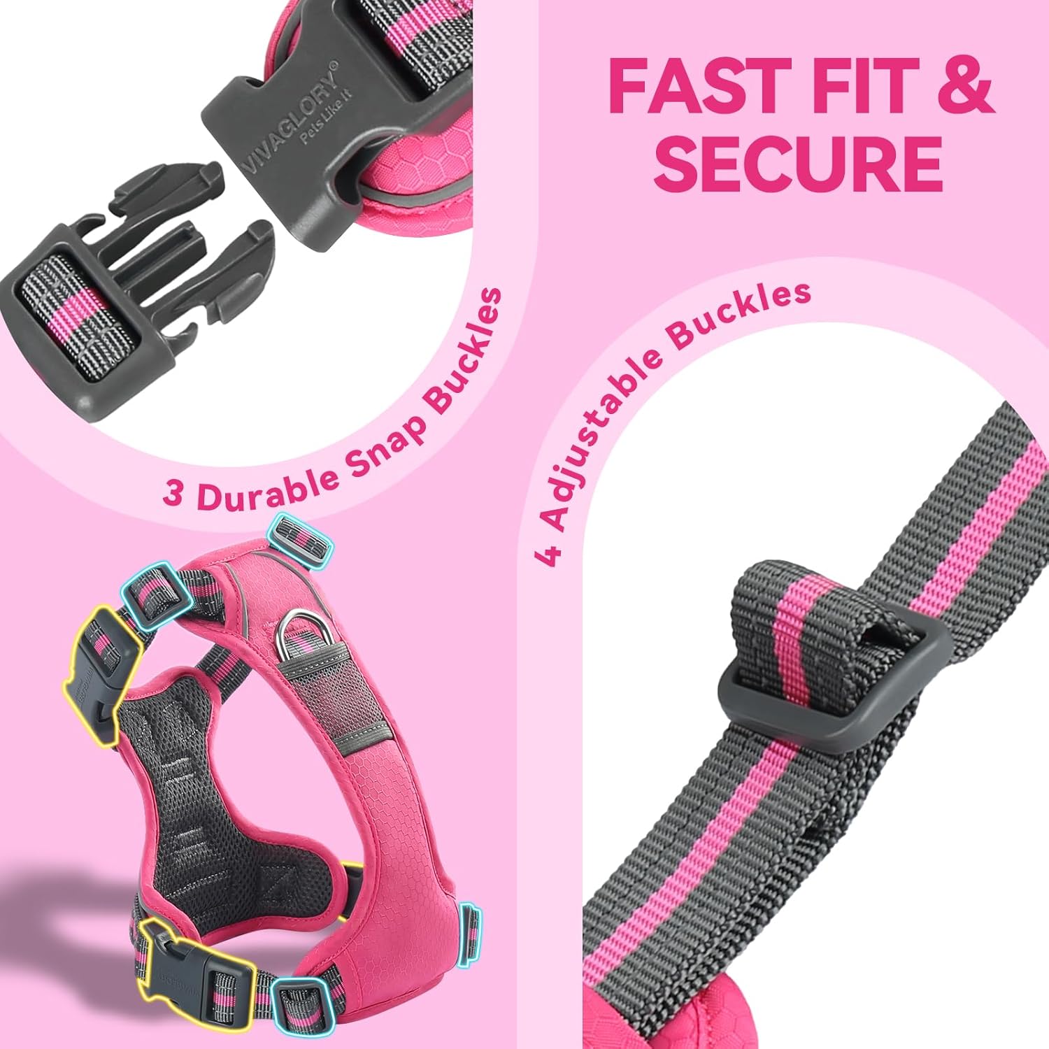 VIVAGLORY Easewalk Нагръдник за кучета, Нагръдник против дърпане за обучение и разходки, Нагръдник против дърпане, Нагръдник за кученца с дръжка, Защита от бягство и непрестанна защита от дърпане за кученца, Кучета, M, Розов