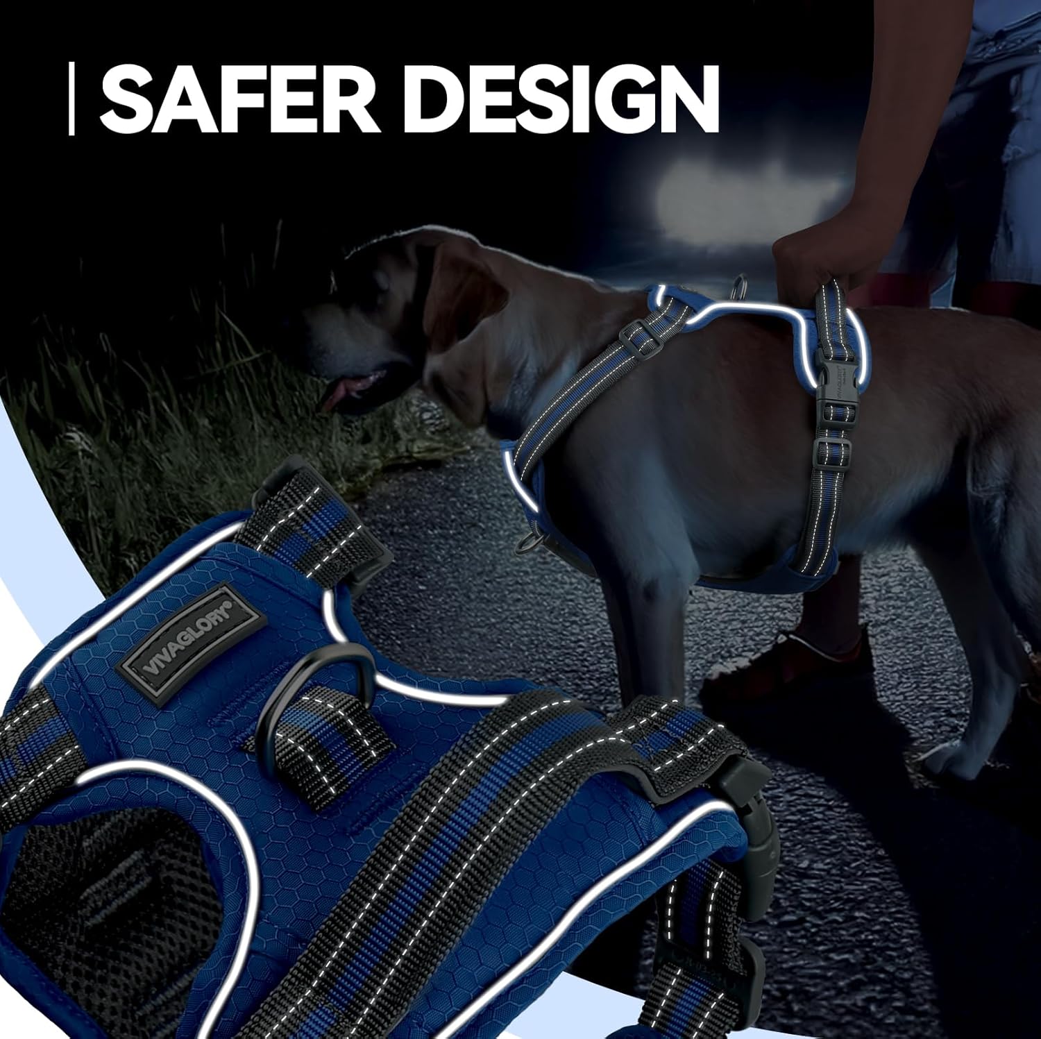 • Против дърпане: Кучешкият нагръдник VIVAGLORY против дърпане е оборудван с два здрави метални D-образни пръстена за ефективно намаляване на дърпането и подобряване на контрола. Предният D-образен пръстен помага за пренасочване на кучето и коригиране на поведението при дърпане – идеален за обучение. Задният D-образен пръстен е подходящ за разходки, джогинг или туризъм. Дизайнът разпределя равномерно силата на опън, не е задушаващ и предпазва врата на кучето. Подсилените шевове увеличават издръжливостта.