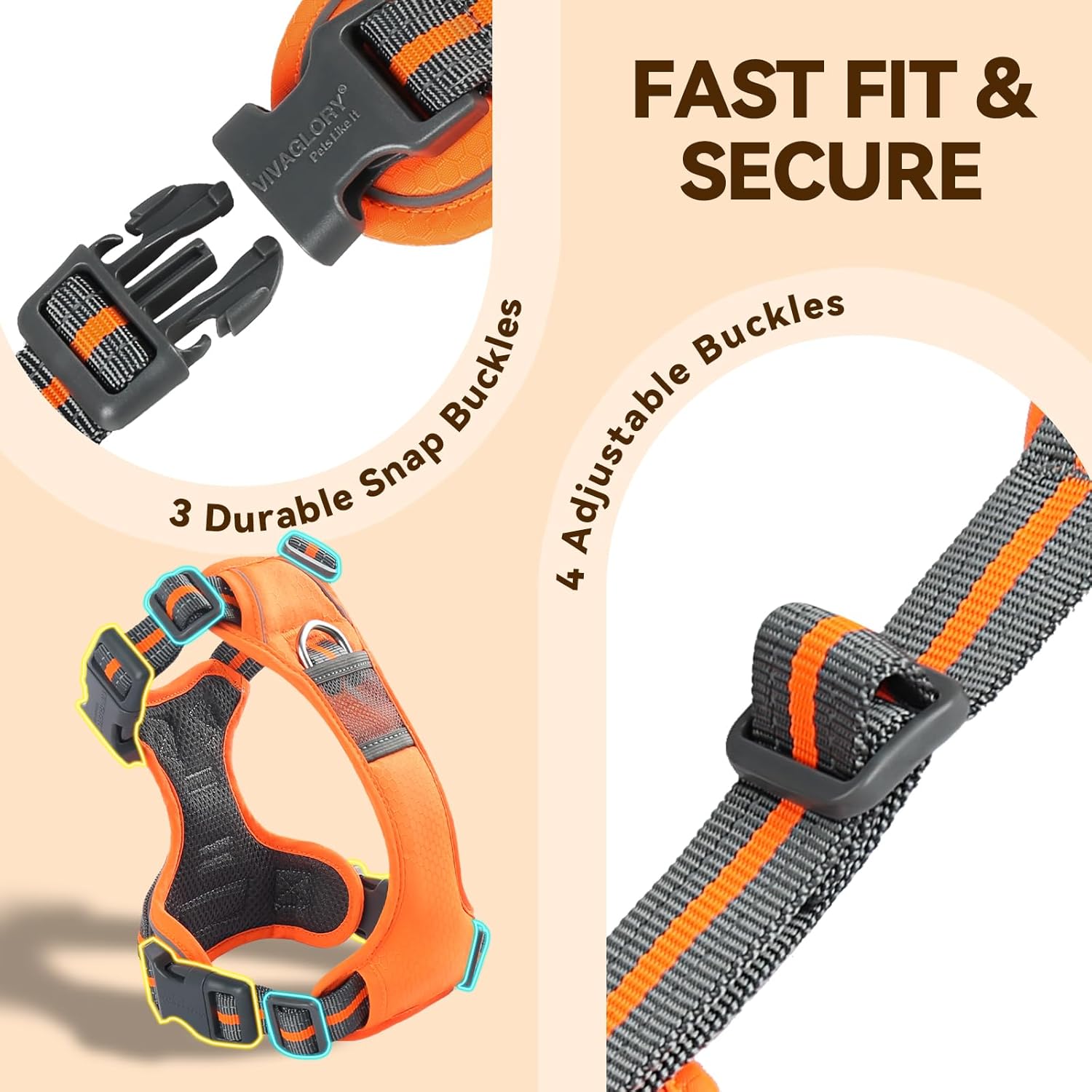 • Против дърпане: Кучешкият нагръдник VIVAGLORY против дърпане е оборудван с два здрави метални D-образни пръстена за ефективно намаляване на дърпането и подобряване на контрола. Предният D-образен пръстен помага за пренасочване на кучето и коригиране на поведението при дърпане – идеален за обучение. Задният D-образен пръстен е подходящ за разходки, джогинг или туризъм. Дизайнът разпределя равномерно силата на опън, не е задушаващ и предпазва врата на кучето. Подсилените шевове увеличават издръжливостта.