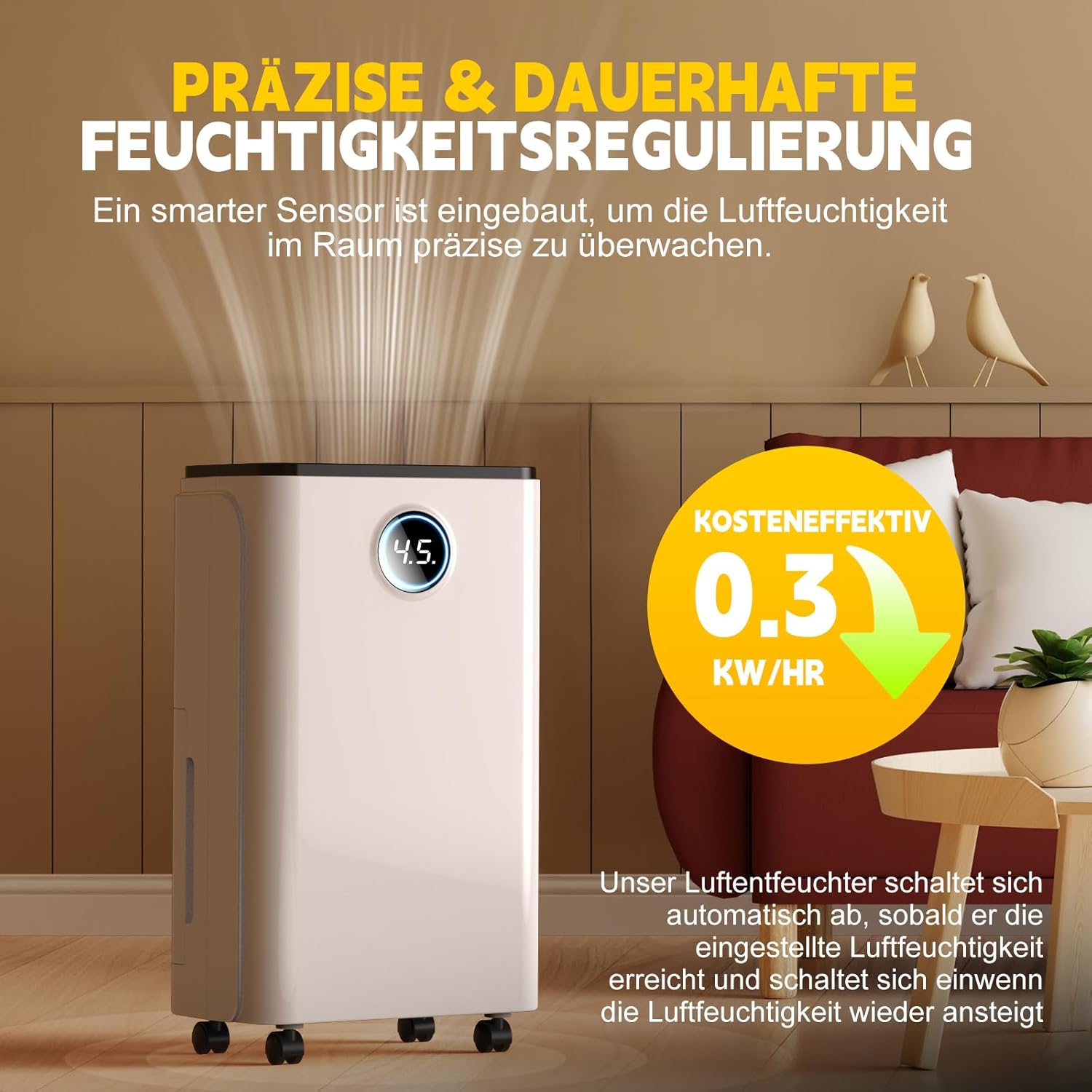 • Преносим интелигентен влагоабсорбатор за домашна употреба: За по-голяма безопасност и предотвратяване на случайно включване, влагоабсорбаторът за домашна употреба има детска защита. Просто натиснете и задръжте бутона за родителски контрол, за да го активирате или деактивирате. Оборудван с четири висококачествени колела, той може лесно да мести устройството от една стая в друга, особено в зони с висока влажност. Ако имате допълнителни въпроси, моля, свържете се с нас по всяко време, за да можем да ви помогнем бързо и задоволително.