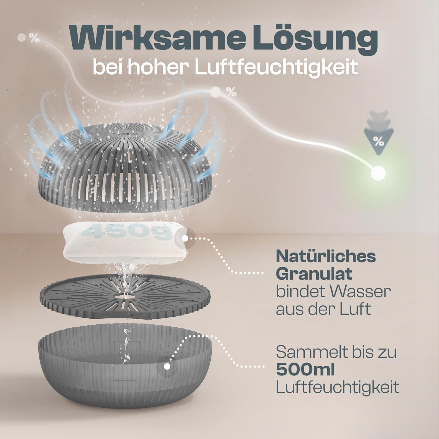 Влагоабсорбатор без електричество до 25 м² [Най-нова формула] Влагоабсорбатор за помещение без електричество с 450 г гранули за обезвлажняване - Влагоабсорбатор за помещение - Абсорбатор на влага за приятно