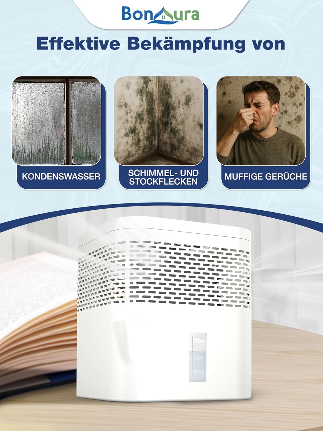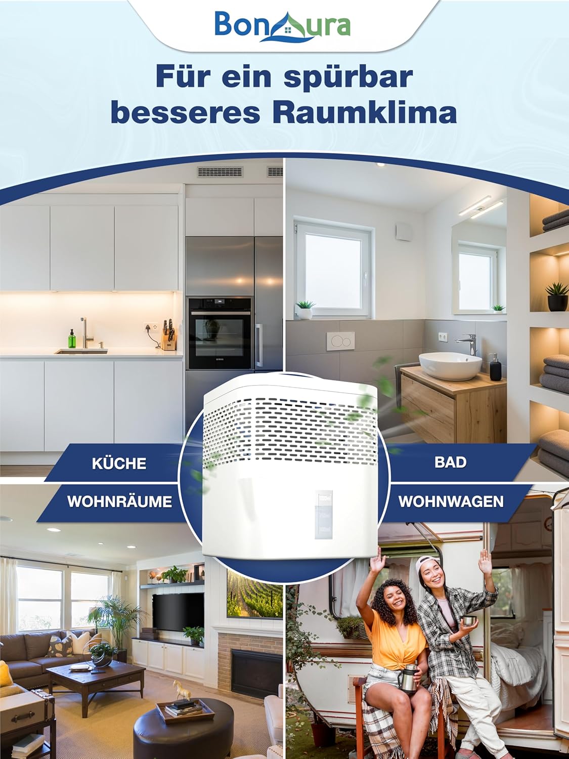 Борете се с влагата с пълнителя за обезвлажнител BonAura AirOne! Този пакет за пълнене на гранули за обезвлажнител е специално разработен за употреба във вашия обезвлажнител BonAura и в комбинация с вашето устройство осигурява постоянно сух, приятен въздух в помещението. Комплектът съдържа четири торбички за обезвлажнител, всяка с по 450 г гранули за обезвлажнител, които сигурно свързват влагата и по този начин осигуряват здравословен климат в помещенията. Качеството на BonAura е синоним на ефективност и надеждност: една торбичка за обезвлажнител издържа до три месеца и предпазва помещенията ви от мухъл и неприятни миризми, като свързва излишната влага в пакета за пълнене на гранули за обезвлажнител. Този пакет за пълнене Bon Aura пасва идеално на всички модели обезвлажнители BonAura и гарантира най-добри резултати в комбинация с вашето устройство. Пакетът за пълнене BonAura AirOne позволява лесно приложение без кабели или батерии. Просто поставете торбичката за пълнене на обезвлажнител във вашия обезвлажнител BonAura и гранулите ще разгърнат пълния си ефект - без допълнителен разход на енергия. Влагата е здраво свързана и остава задържана във вашето устройство BonAura, докато торбичката не бъде сменена. Със солевия влагоабсорбатор във вашия BonAura влагоабсорбатор можете да постигнете забележими резултати: хол, спалня или детска стая, офиси или мазета са надеждно защитени от влага. Комплектите за пълнене на влагоабсорбаторите са идеални за всички зони, предразположени към висока влажност, и осигуряват свеж, приятен вътрешен климат. Комплектът за пълнене на гранули за влагоабсорбатор е идеалното решение, за да осигурите на вашия BonAura влагоабсорбатор максимална производителност и издръжливост. Вземете вашия комплект за пълнене на гранули Bonaura 450 г и усетете разликата - вашият надежден спътник за осигуряване на здравословен и сух вътрешен климат в комбинация с вашия BonAura влагоабсорбатор.
