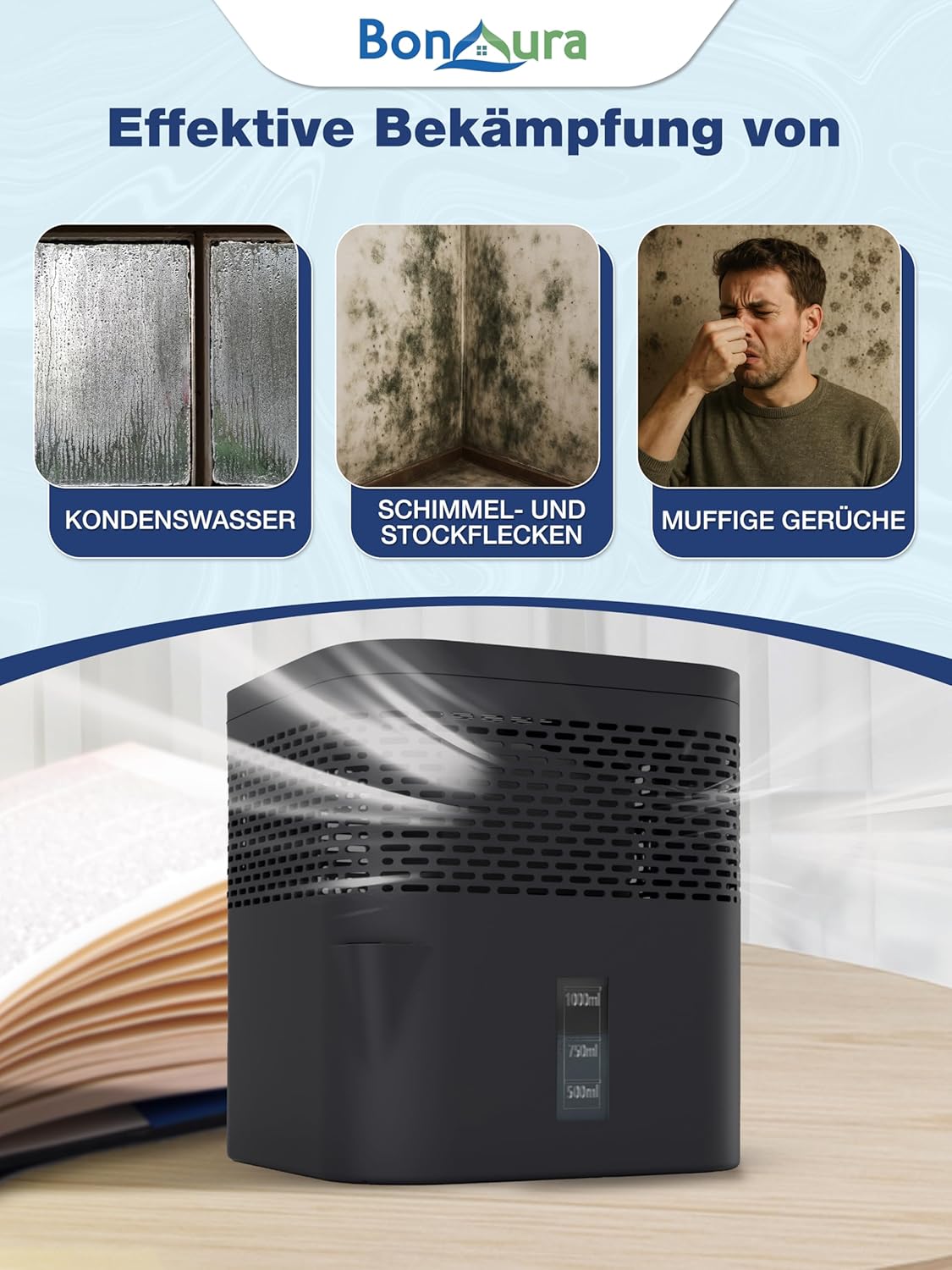 Борете се с влагата с пълнителя за обезвлажнител BonAura AirOne! Този пакет за пълнене на гранули за обезвлажнител е специално разработен за употреба във вашия обезвлажнител BonAura и в комбинация с вашето устройство осигурява постоянно сух, приятен въздух в помещението. Комплектът съдържа четири торбички за обезвлажнител, всяка с по 450 г гранули за обезвлажнител, които сигурно свързват влагата и по този начин осигуряват здравословен климат в помещенията. Качеството на BonAura е синоним на ефективност и надеждност: една торбичка за обезвлажнител издържа до три месеца и предпазва помещенията ви от мухъл и неприятни миризми, като свързва излишната влага в пакета за пълнене на гранули за обезвлажнител. Този пакет за пълнене Bon Aura пасва идеално на всички модели обезвлажнители BonAura и гарантира най-добри резултати в комбинация с вашето устройство. Пакетът за пълнене BonAura AirOne позволява лесно приложение без кабели или батерии. Просто поставете торбичката за пълнене на обезвлажнител във вашия обезвлажнител BonAura и гранулите ще разгърнат пълния си ефект - без допълнителен разход на енергия. Влагата е здраво свързана и остава задържана във вашето устройство BonAura, докато торбичката не бъде сменена. Със солевия влагоабсорбатор във вашия BonAura влагоабсорбатор можете да постигнете забележими резултати: хол, спалня или детска стая, офиси или мазета са надеждно защитени от влага. Комплектите за пълнене на влагоабсорбаторите са идеални за всички зони, предразположени към висока влажност, и осигуряват свеж, приятен вътрешен климат. Комплектът за пълнене на гранули за влагоабсорбатор е идеалното решение, за да осигурите на вашия BonAura влагоабсорбатор максимална производителност и издръжливост. Вземете вашия комплект за пълнене на гранули Bonaura 450 г и усетете разликата - вашият надежден спътник за осигуряване на здравословен и сух вътрешен климат в комбинация с вашия BonAura влагоабсорбатор.