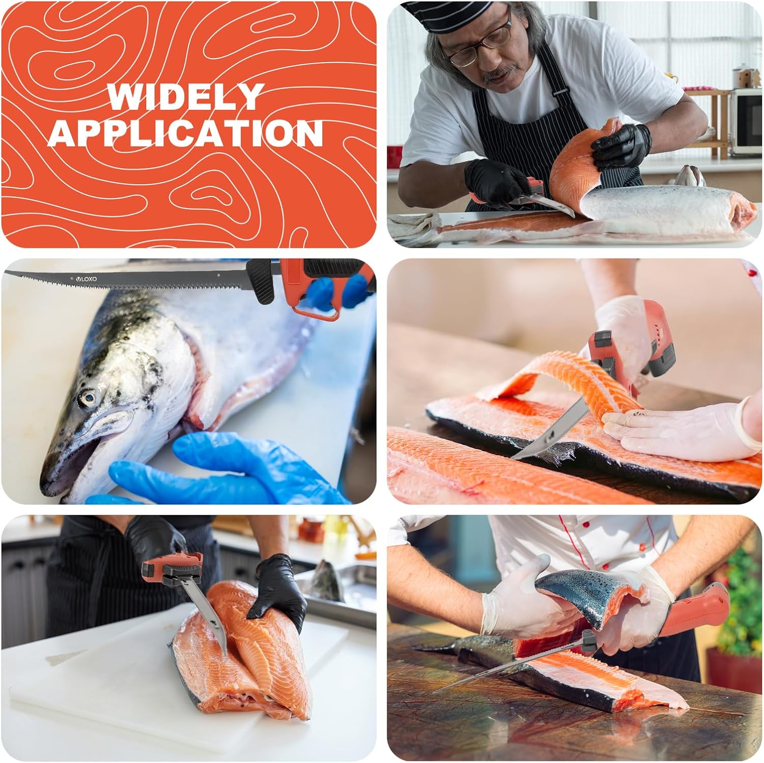 • Насладете се на рязането: електрическият нож за филетиране VLOXO е изработен с двойни остриета от неръждаема стомана, твърд е и устойчив на износване. С перфектна комбинация от издръжливост и професионална функционалност, както и сменяемо острие от неръждаема стомана, този нож е проектиран да направи приготвянето на риба по-бързо и лесно.