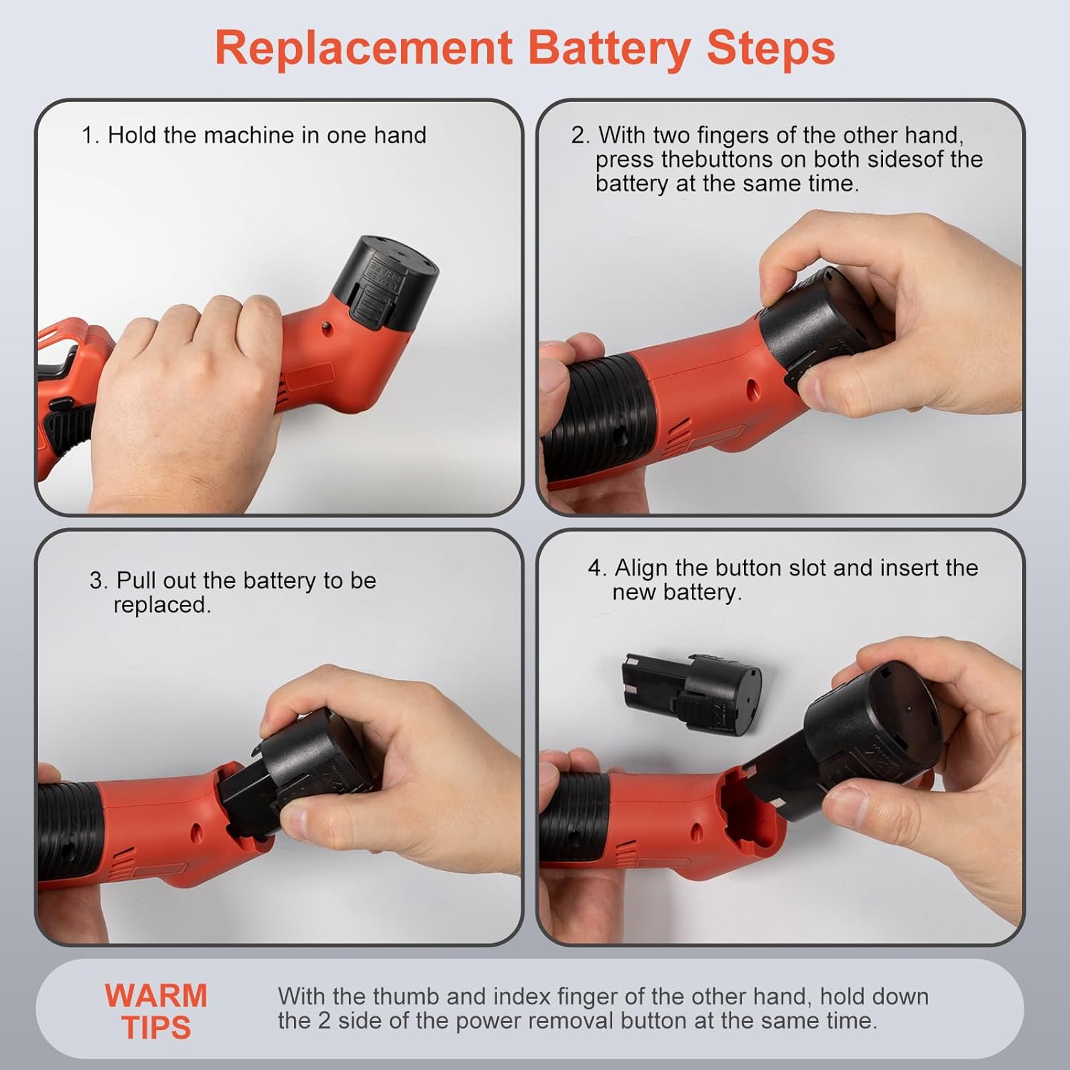 • Неплъзгаща се дръжка и предпазна ключалка: неплъзгащата се дръжка за отличен захват осигурява максимален контрол на ножа, а спусъкът осигурява допълнителна безопасност. В същото време, трябва да натиснете предпазната ключалка преди употреба и след това да включите превключвателя за захранване. За да увеличите безопасността при употреба, нека бъдем по-спокойни.