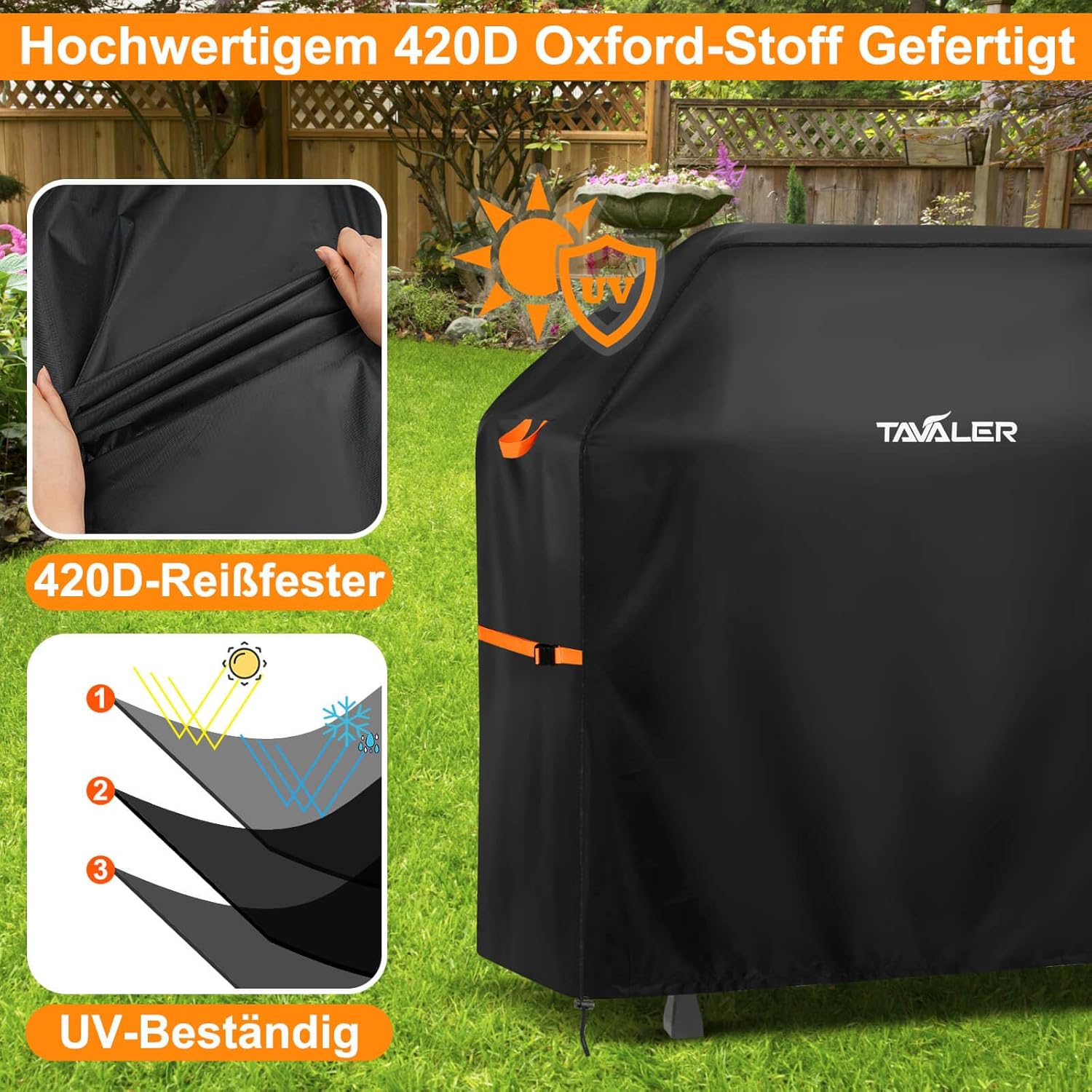 • За любимата ви скара: Благодарение на големите си размери (140 x 65 x 120 см), покривалото за скара Tavaler е устойчиво на атмосферни влияния и е подходящо за най-разпространените марки като , Holland, Jenn Air, Tepro, Brinkmann, Char Broil и Landmann. Моля, измерете размера на вашата скара преди покупка.