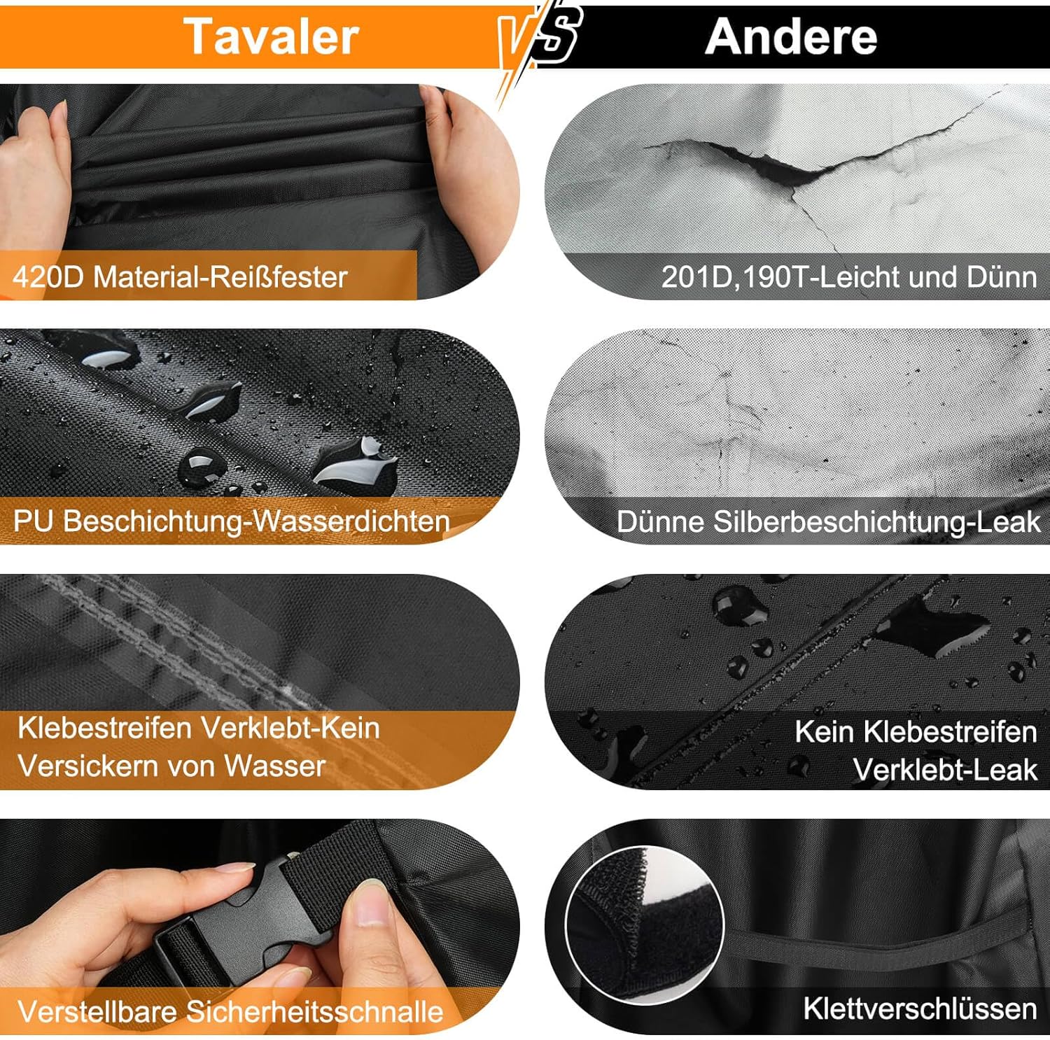 • За любимата ви скара: Благодарение на големите си размери (140 x 65 x 120 см), покривалото за скара Tavaler е устойчиво на атмосферни влияния и е подходящо за най-разпространените марки като , Holland, Jenn Air, Tepro, Brinkmann, Char Broil и Landmann. Моля, измерете размера на вашата скара преди покупка.