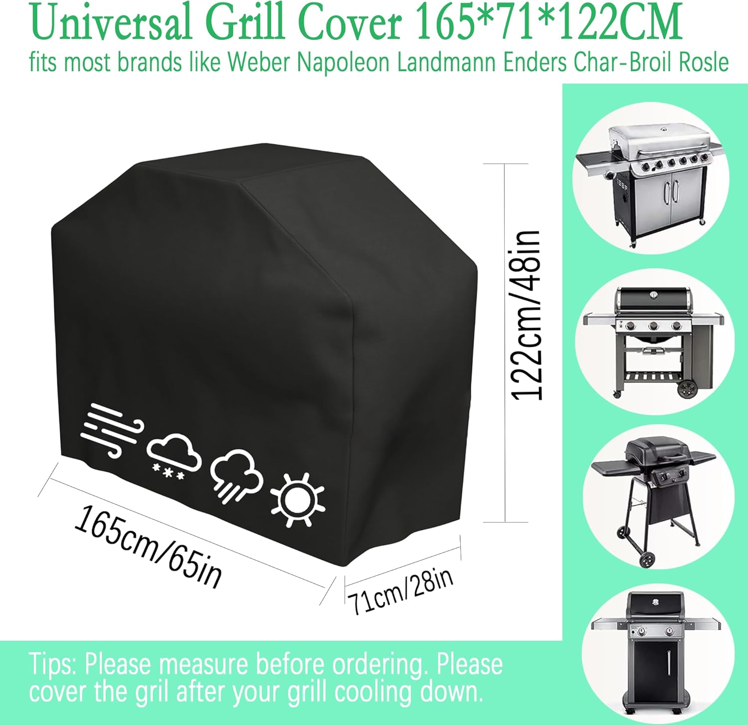 Този калъф за грил е подходящ за почти всички марки грилове. Но все пак, моля, проверете размера на грила преди покупка.