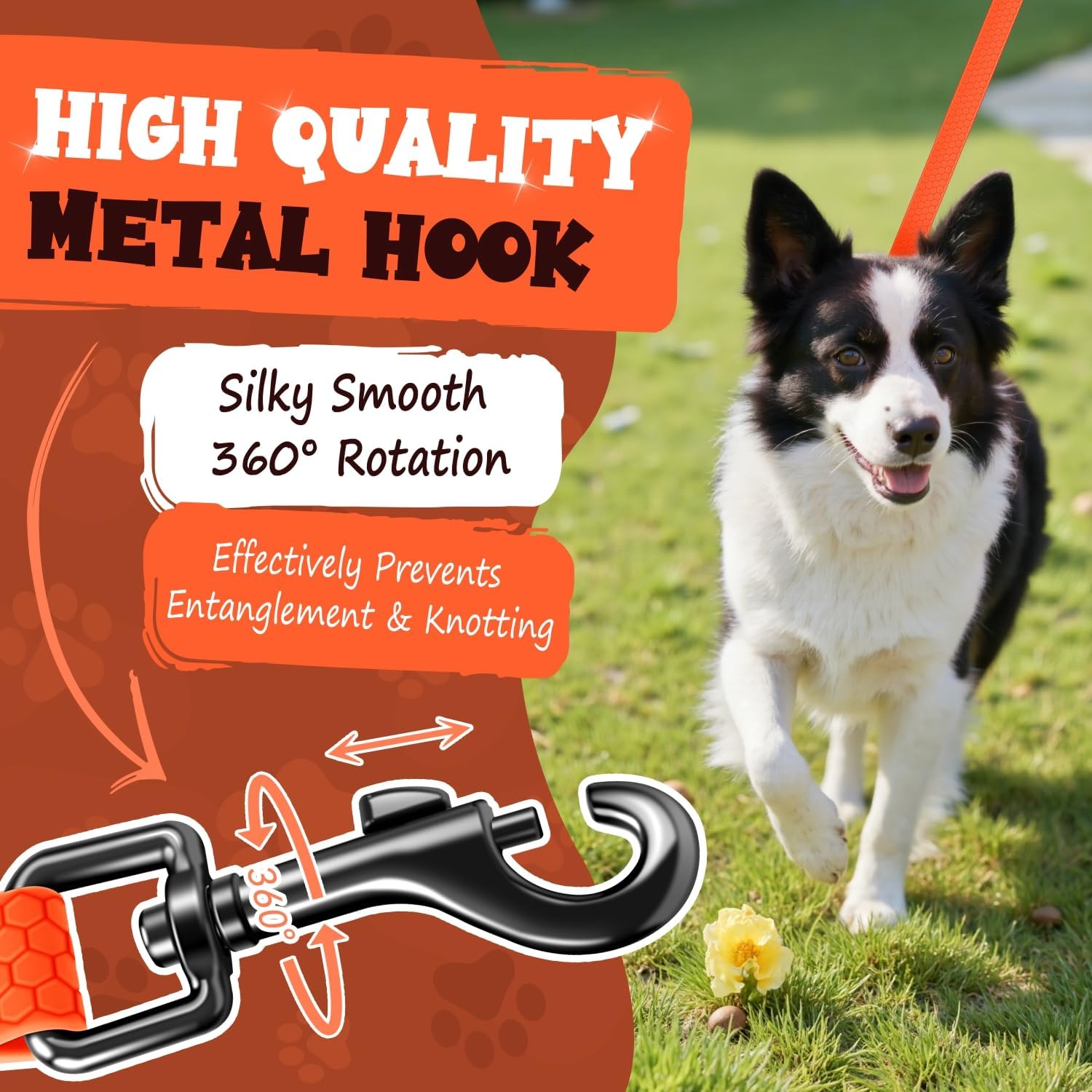 • Ергономична дръжка и въртящ се на 360° карабинер: Дръжката на повода за кучета е снабдена с мека памучна подплата, която може да намали натиска върху ръцете ви, позволявайки на вас и вашето куче да играете на открито дълго време. Въртящият се на 360° карабинер е лек, здрав и може бързо да се прикрепи към нашийника, без да се отваря. Така кучето ви е в безопасност и все още може да души наоколо.