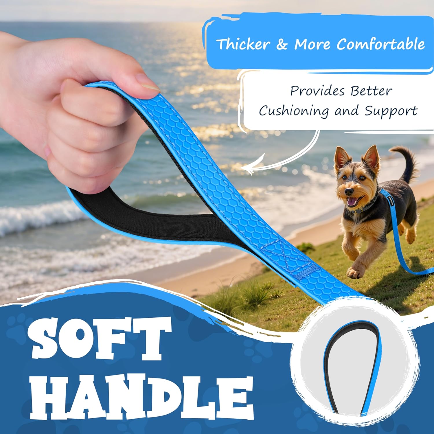 • Ергономична дръжка и въртящ се на 360° карабинер: Дръжката на повода за кучета е снабдена с мека памучна подплата, която може да намали натиска върху ръцете ви, позволявайки на вас и вашето куче да играете на открито дълго време. Въртящият се на 360° карабинер е лек, здрав и може бързо да се прикрепи към нашийника, без да се отваря. Така кучето ви е в безопасност и все още може да души наоколо.