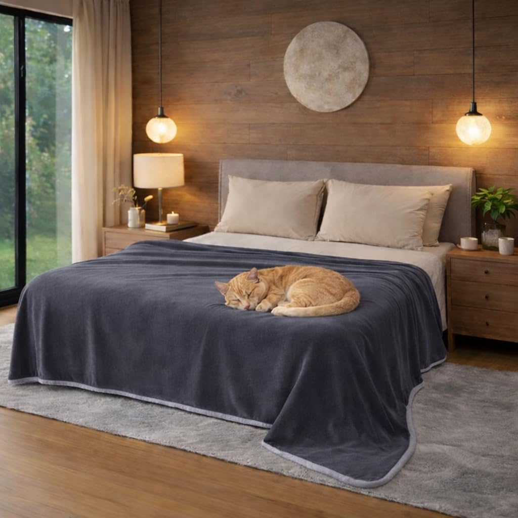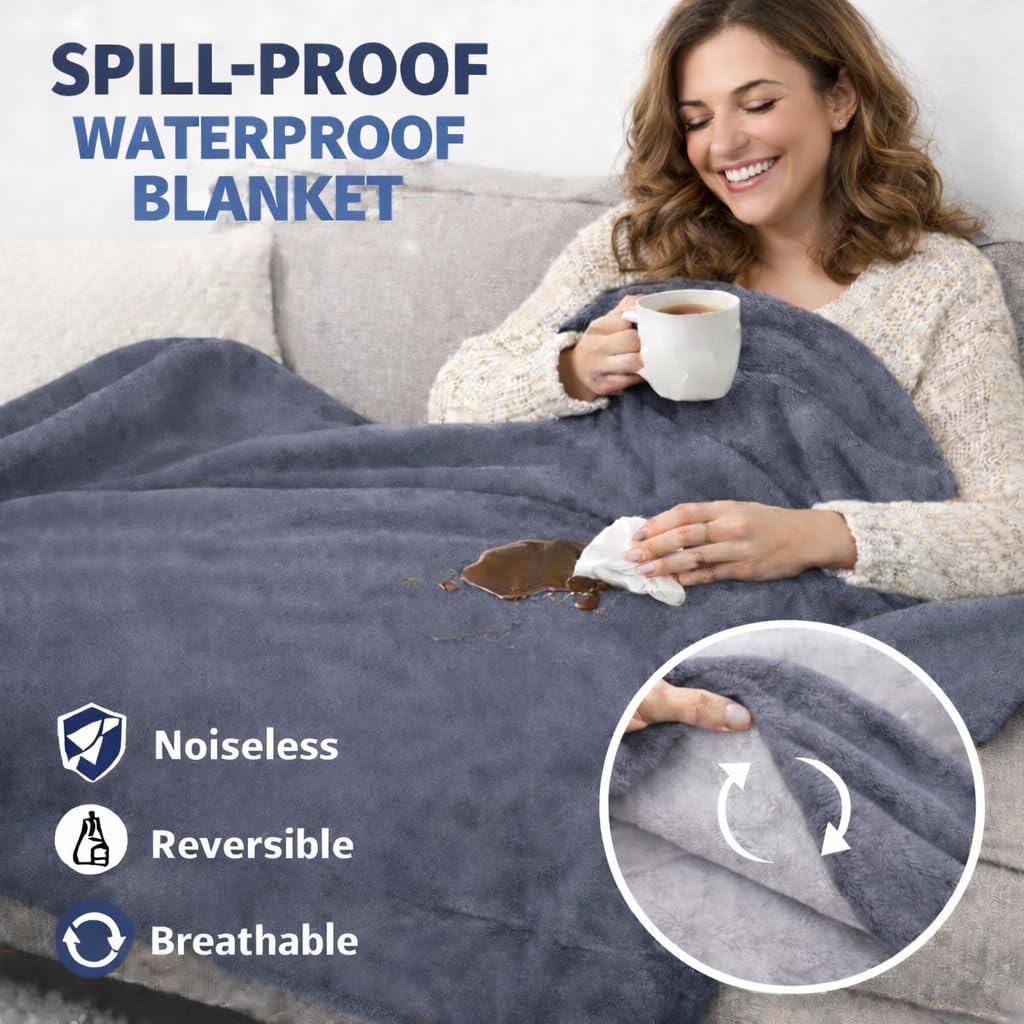 Това красиво, многофункционално и водоустойчиво двулицево одеяло предпазва вашите мебели и спално бельо от петна, причинени от разливи, урина и други неудобства. Вече не е нужно да се притеснявате, че котката ви ще използва леглото ви като тоалетна, кучета с мръсни лапи ще скачат върху скъпите ви завивки или когато искате да се забавлявате с партньора си. Външният слой от водоотблъскващ фланел е мек и пухкав на допир и е идеален за използване в леглото или като кучешко одеяло за дивани.