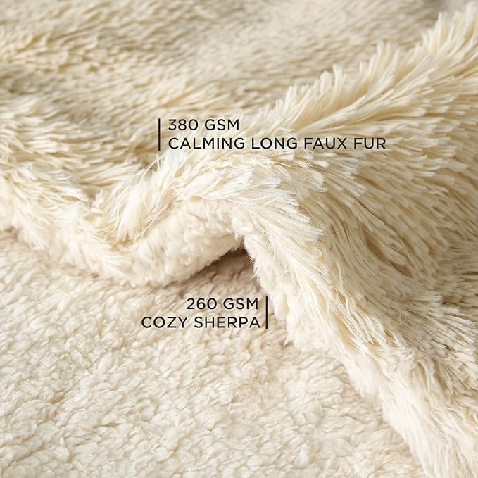 Водоустойчиво одеяло за кучета BEDSURE за големи кучета - 127 x 152 см дълго плюшено одеяло за кучета, което може да се пере, пухкаво и меко защитно одеяло за кучешки диван, кремаво