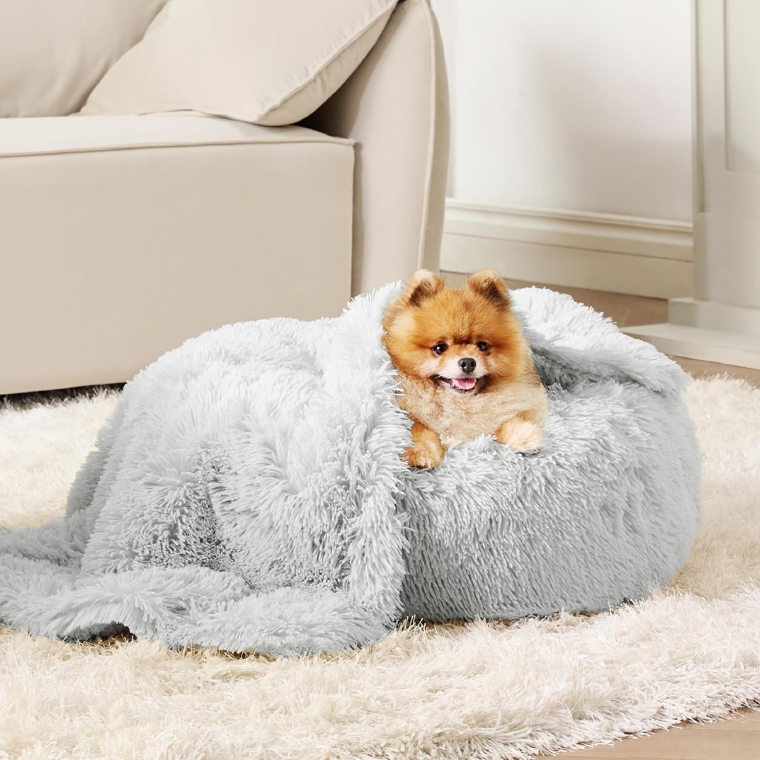 Водоустойчиво одеяло за кучета BEDSURE за малки кучета - 60 x 80 см дълго плюшено одеяло за кучета, което може да се пере, пухкаво и меко защитно одеяло, одеяло за кучешки диван и котка за котки, светло сиво
