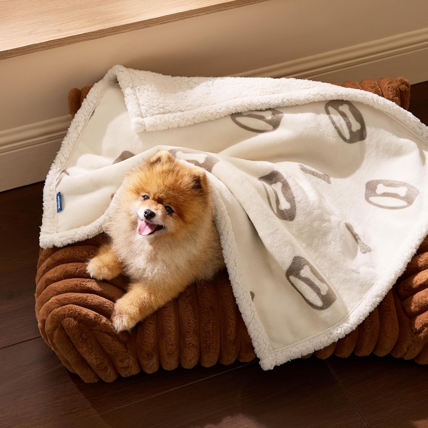Водоустойчиво одеяло за кучета BEDSURE за малки кучета - 73 x 63 см, което може да се пере, шерпа полар, котешко одеяло, пухкаво и меко, кремаво