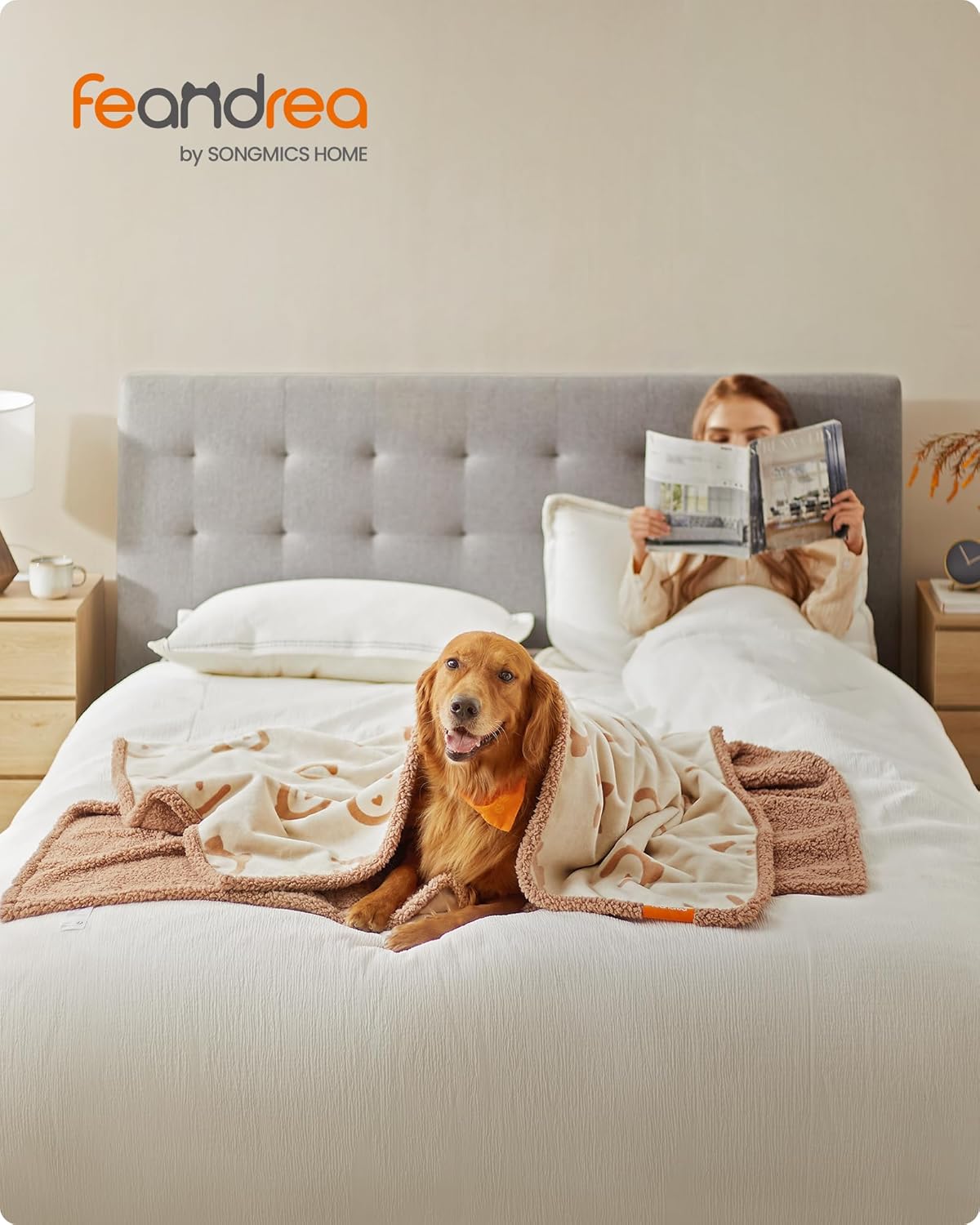 Водоустойчиво одеяло за кучета Feandrea, одеяло от шерпа полар за големи и екстра големи кучета, котки, 203 x 152 см, XXL, Може да се пере в пералня, двустранен протектор за диван, бежово PPB080K01