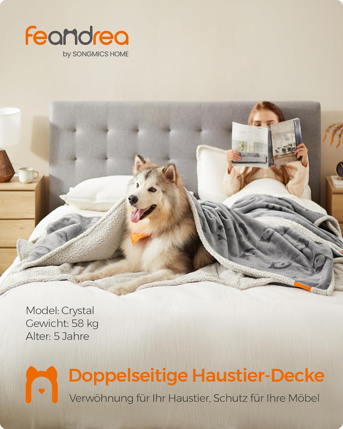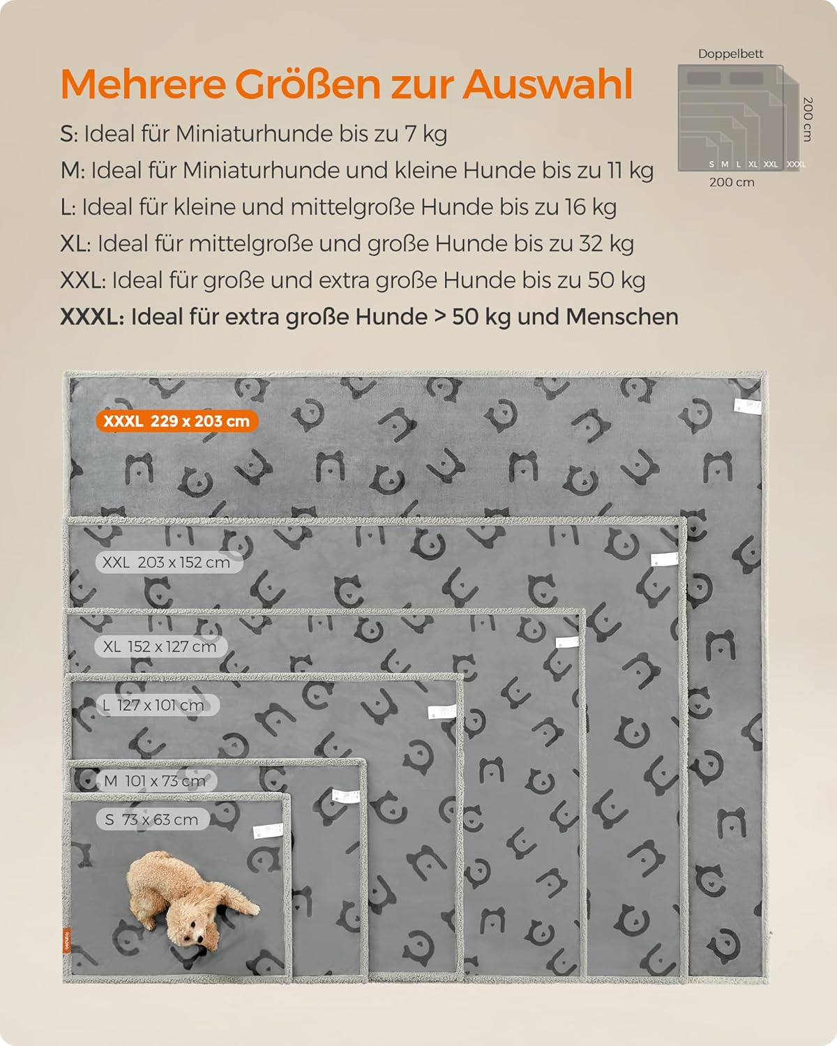 Водоустойчиво одеяло за кучета Feandrea, одеяло от шерпа полар за големи кучета и хора, котки, 229 x 203 см, XXXL, може да се пере в пералня, двустранен калъф за диван, сиво PPB090G01