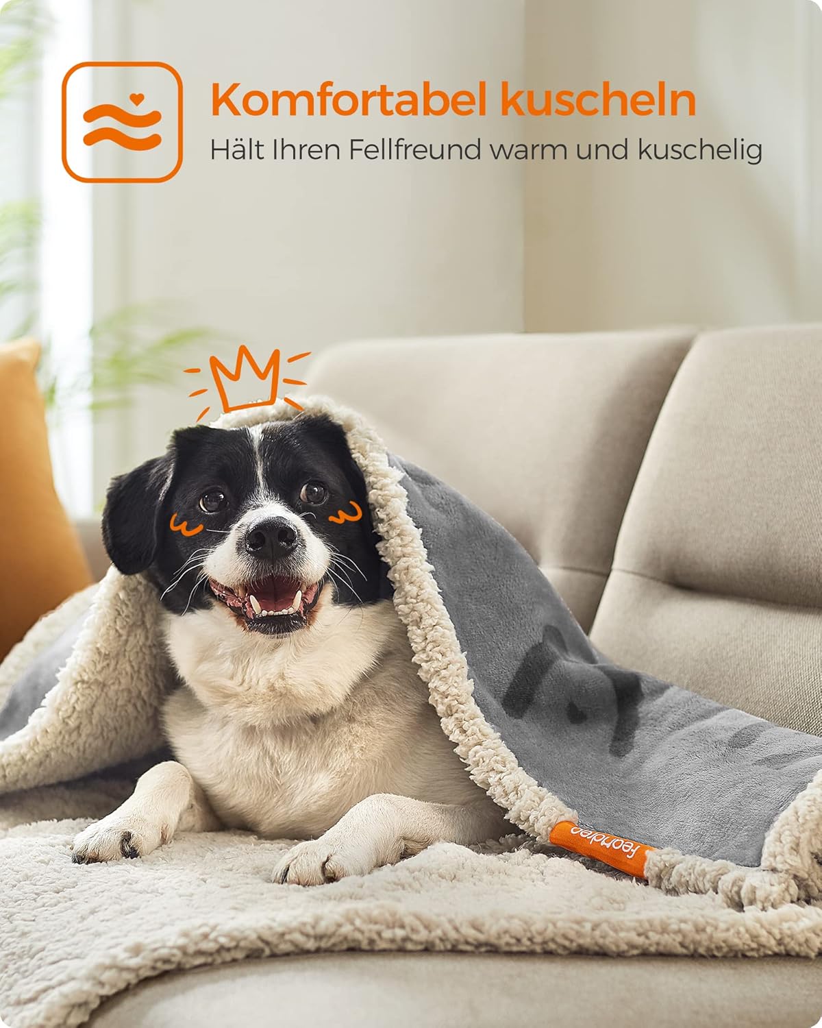 Водоустойчиво одеяло за кучета Feandrea, одеяло от шерпа полар за малки и средни кучета, котки, 127 x 101 см, L, може да се пере в пералня, двустранен протектор за диван, сиво PPB050G01