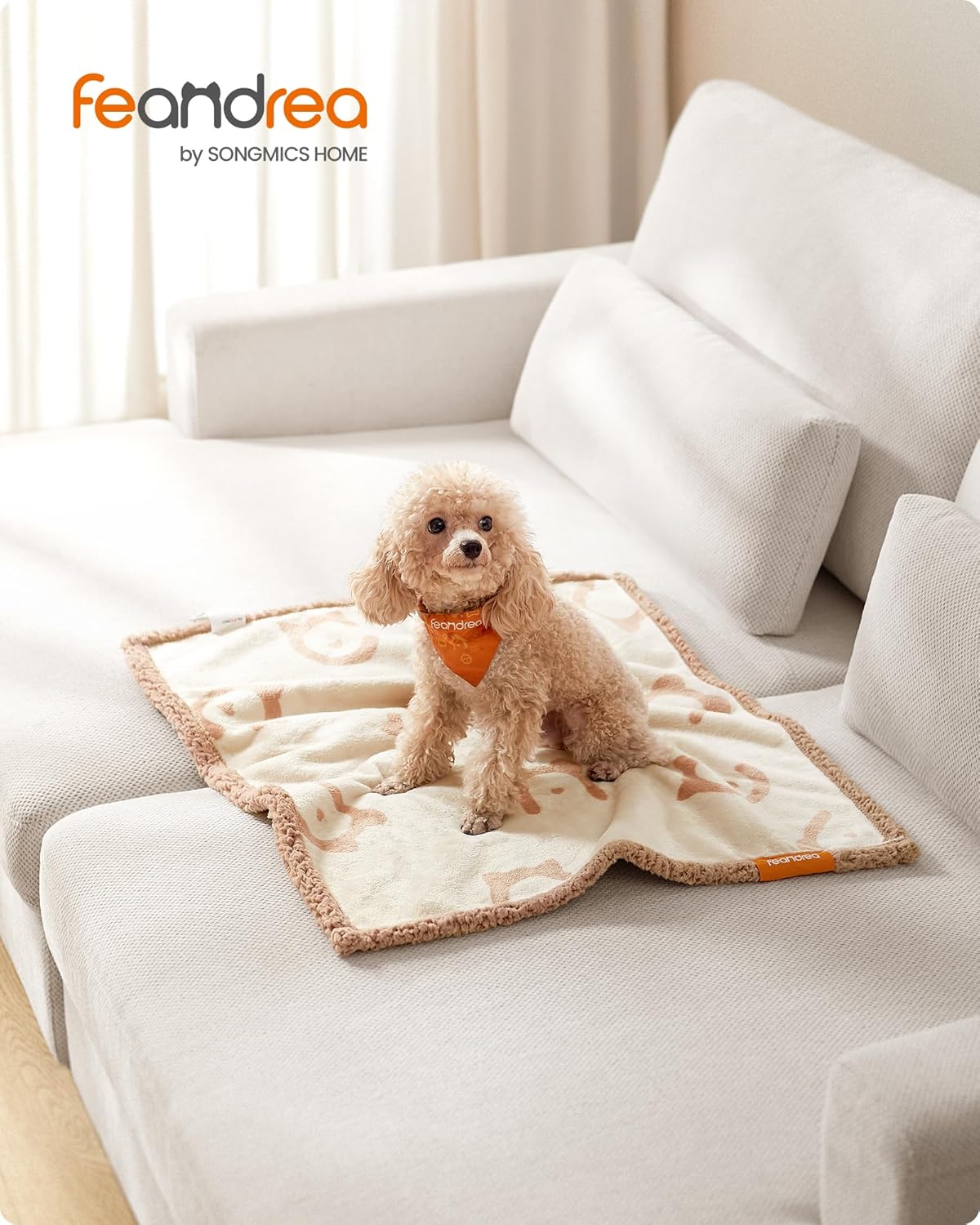 Водоустойчиво одеяло за кучета Feandrea, шерпа поларено одеяло за мини кучета, котки, 73 x 63 см, S, Може да се пере в пералня, двустранен калъф за диван, бежов PPB029K01