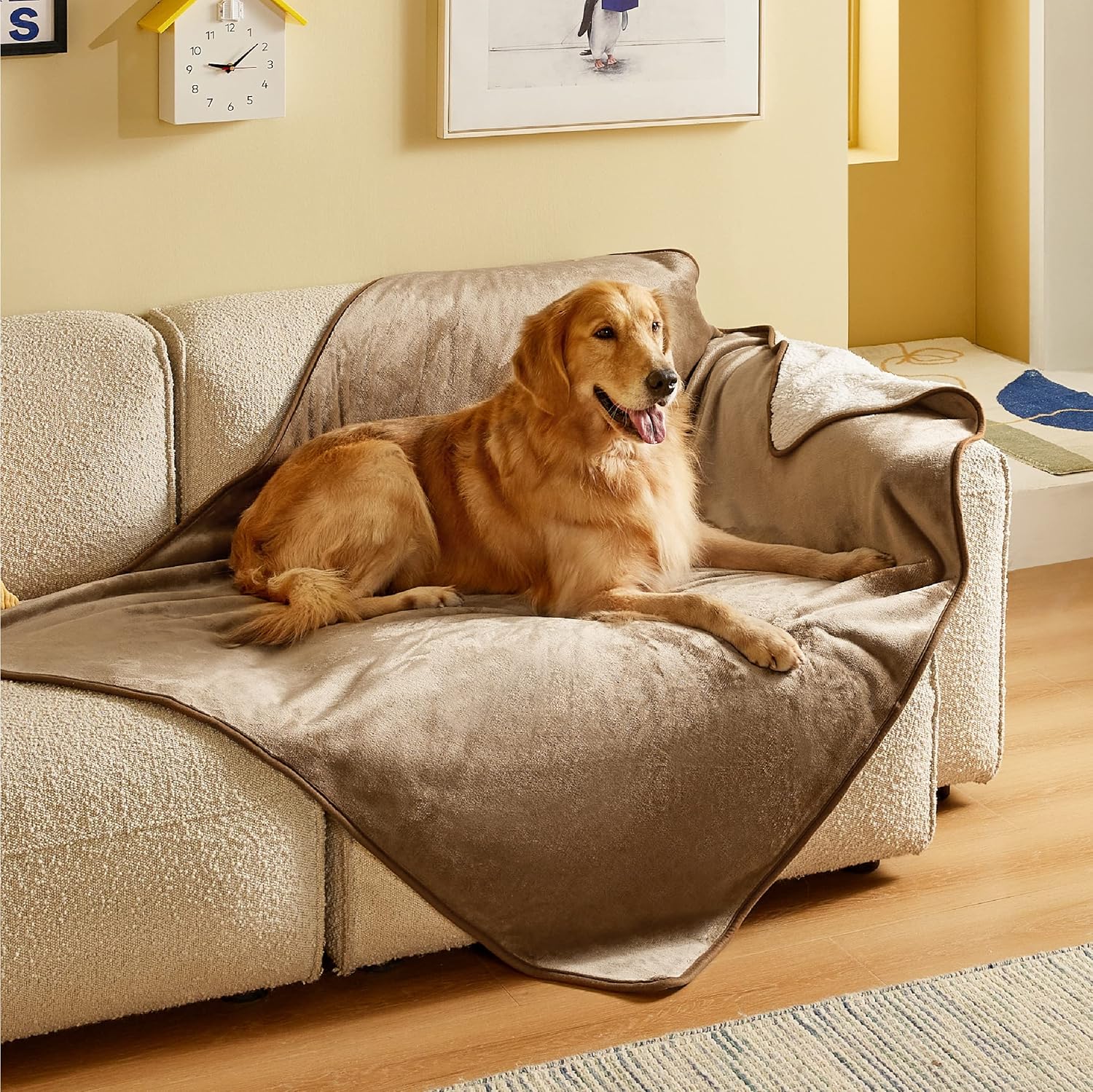 Водоустойчиво одеяло за кучета Lesure, одеяло за кучета, което може да се пере на открито, защита за дивана, шерпа полар, одеяло за котки, пухкаво и меко, за големи кучета, 152 x 127 см, цвят камила