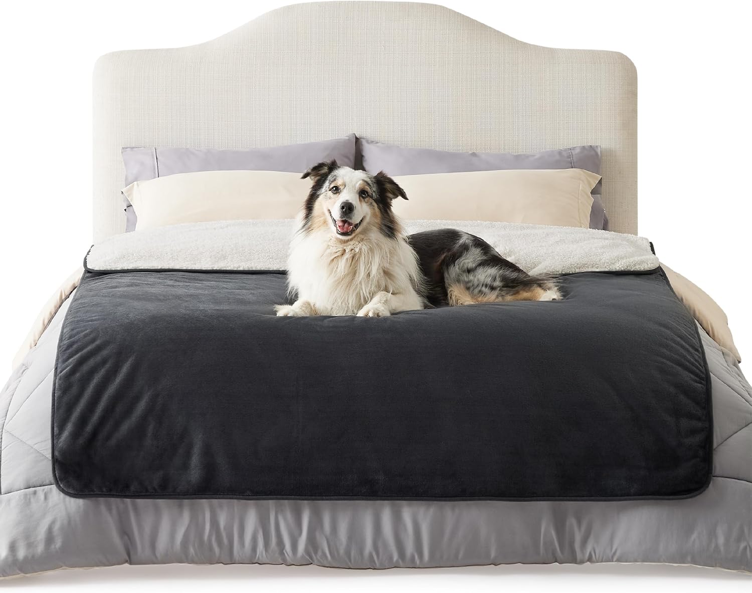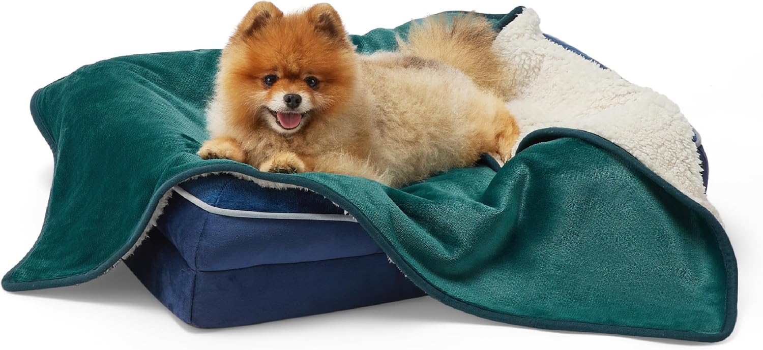 • Топло и уютно одеяло: Това топло одеяло за кучета е изработено от топлия шерпа от едната страна и фланелен полар от другата. Това водоустойчиво одеяло за домашни любимци отблъсква течности, за да поддържа вашите котки и кучета комфортно и топло.