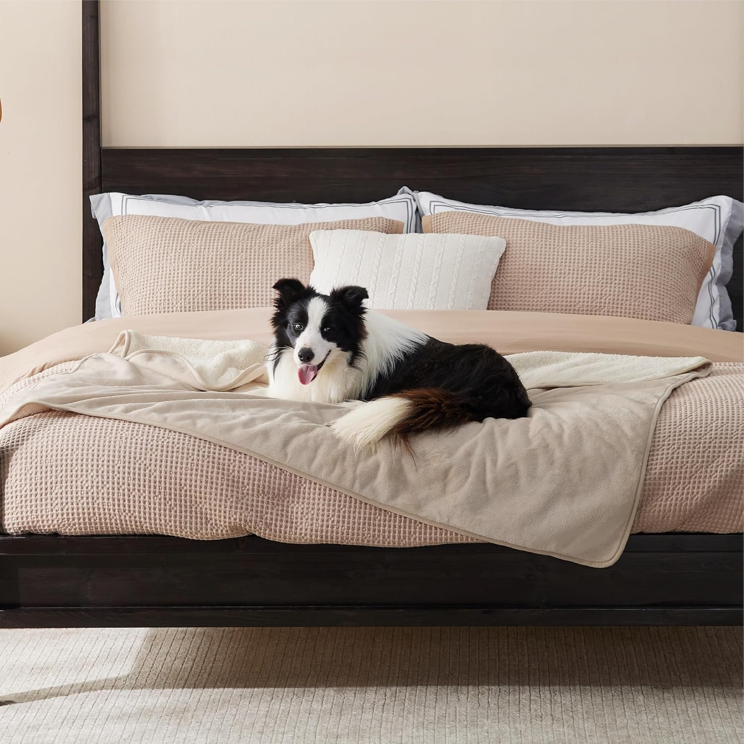 Водоустойчиво одеяло за кучета Lesure за големи кучета, одеяло за кучета за навън, одеяло за кучета, което може да се пере, защита за дивана, одеяло за котки от шерпа полар, пухкаво и меко, 152 x 127 см, кремав цвят