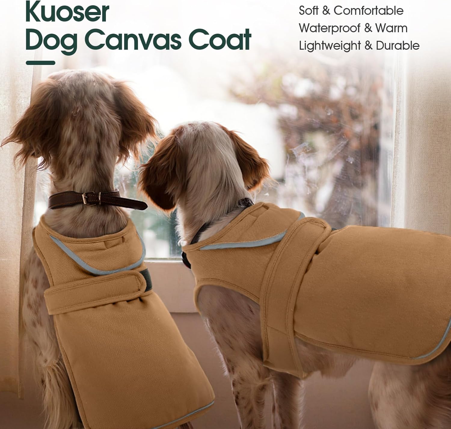 Material: 100% cotton + fleece, warm and comfortable. Water resistant fabric on one side for walking on rainy and snowy days. Easy Velcro closure. Easy to put on and take offHole for collar and harnessReflective tape on neck and back for good visibility