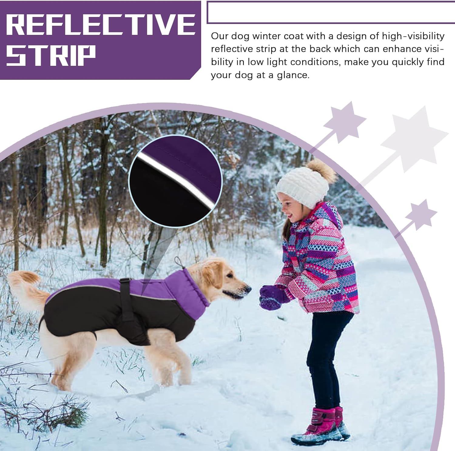 Waterproof shell – the outer material is windproof, waterproof and breathable. Polar fleece lining – warm, comfortable fleece lining. With faux fur lined roll collar – the humanised turtleneck can be opened and closed if necessary and provides additional weather protection when the wind refreshes. Reflective strip design: To keep the safety of dogs during outdoor activities at night, so you can quickly identify dogs in the dark. Harness/leash hole: You can also attach a dog lead to the opening, comfortable to walk dogs. Suitable for most breeds: 6 sizes with 6 designs, from S-3XL.