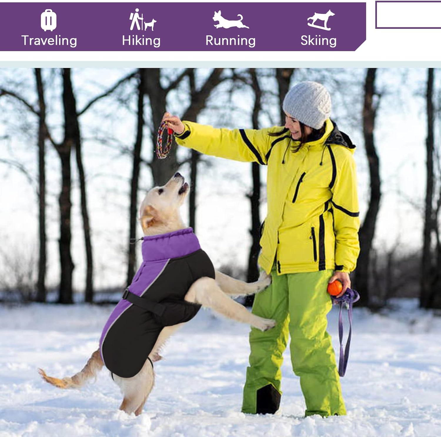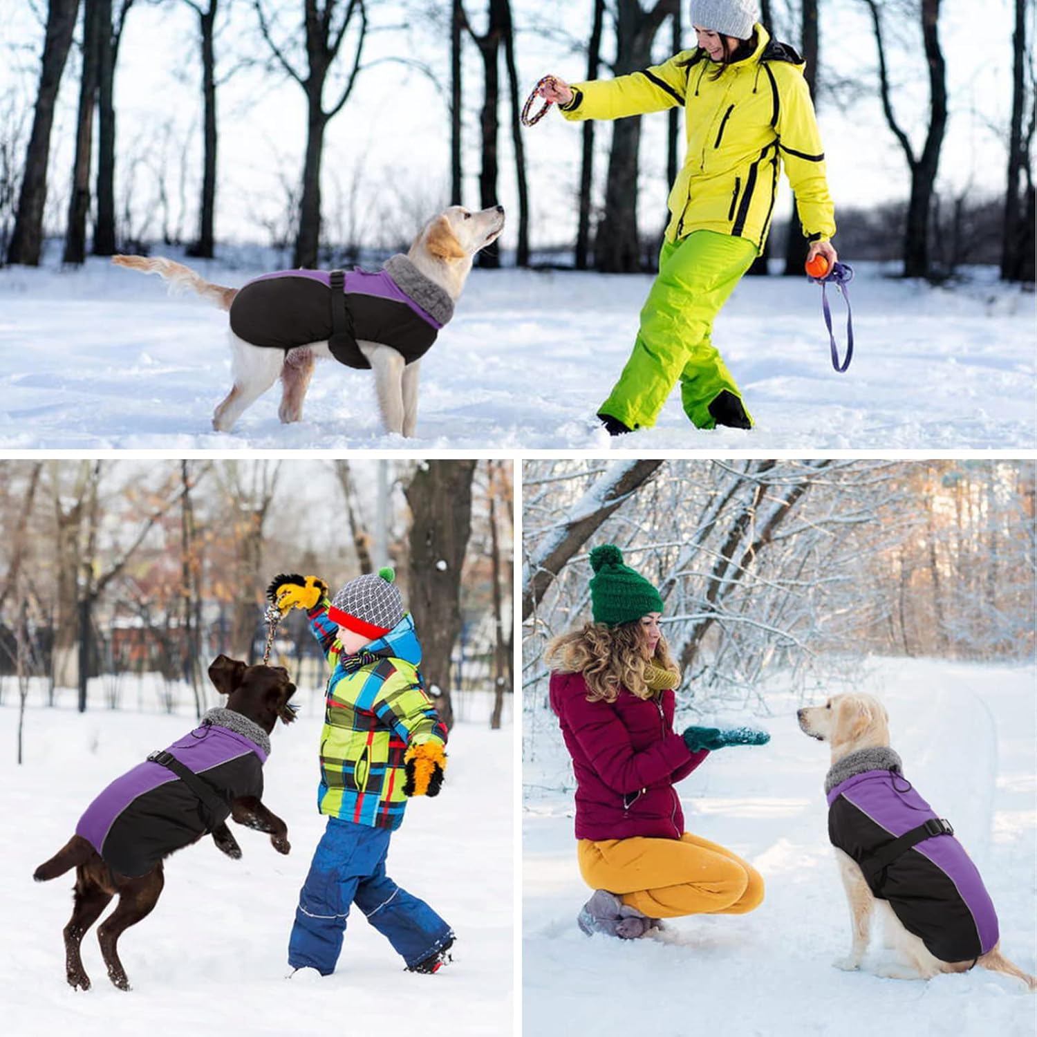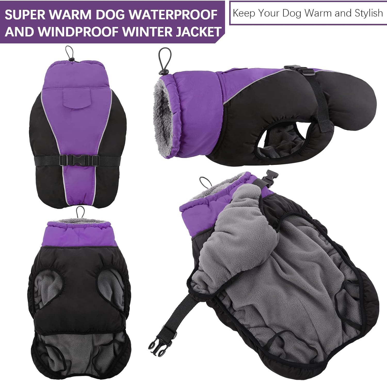 Waterproof shell – the outer material is windproof, waterproof and breathable. Polar fleece lining – warm, comfortable fleece lining. With faux fur lined roll collar – the humanised turtleneck can be opened and closed if necessary and provides additional weather protection when the wind refreshes. Reflective strip design: To keep the safety of dogs during outdoor activities at night, so you can quickly identify dogs in the dark. Harness/leash hole: You can also attach a dog lead to the opening, comfortable to walk dogs. Suitable for most breeds: 6 sizes with 6 designs, from S-3XL.